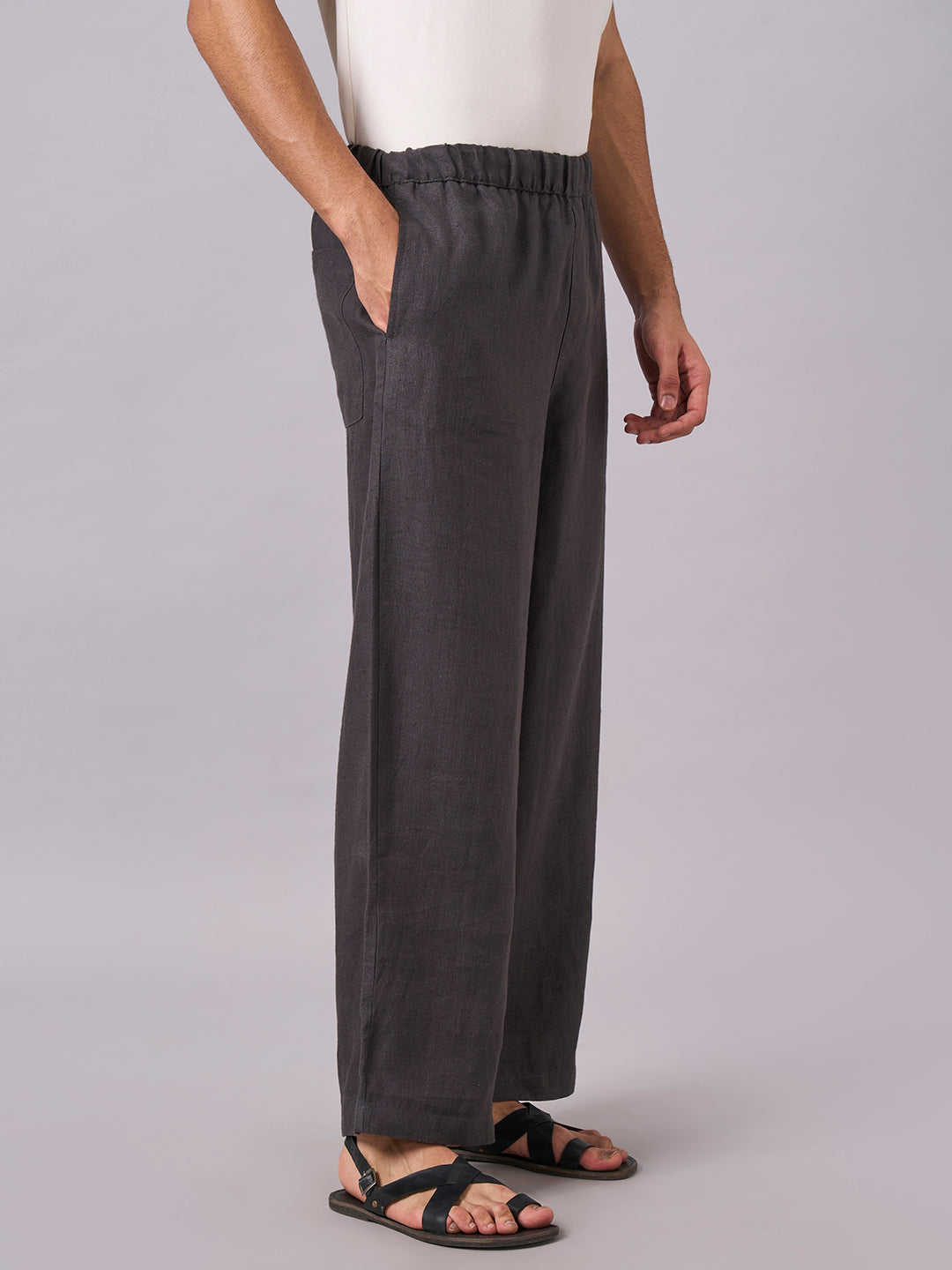 Men's Slate 100% Linen Loose Fit Pant