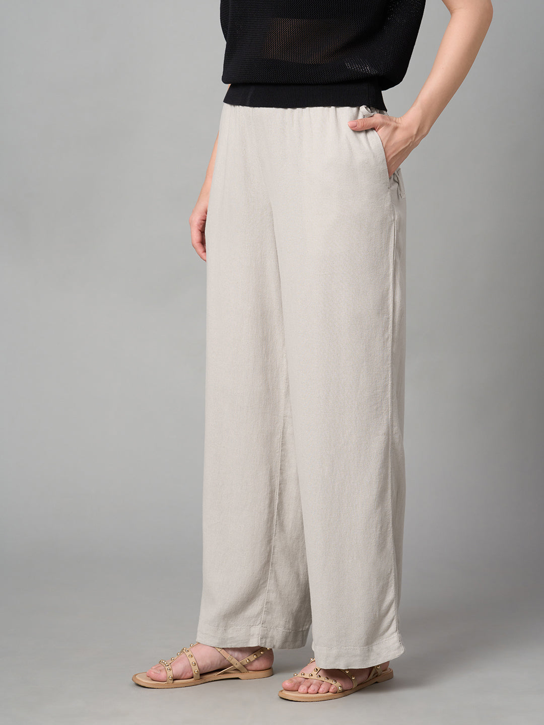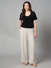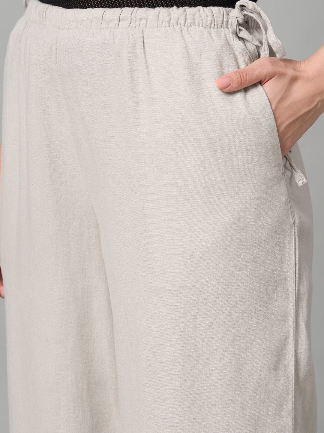 Women's Sand Linen Viscose Regular Fit Pant