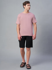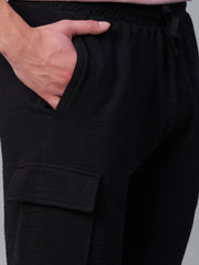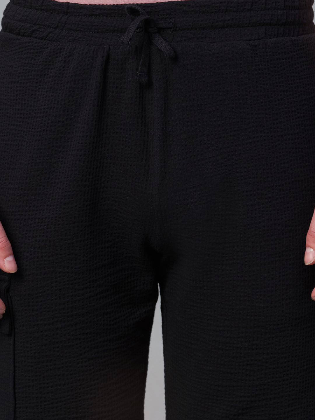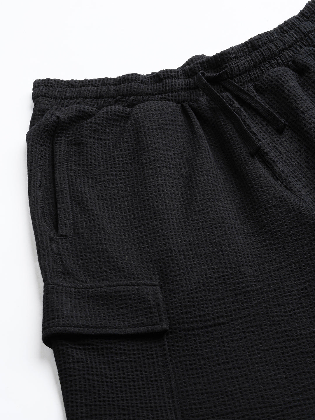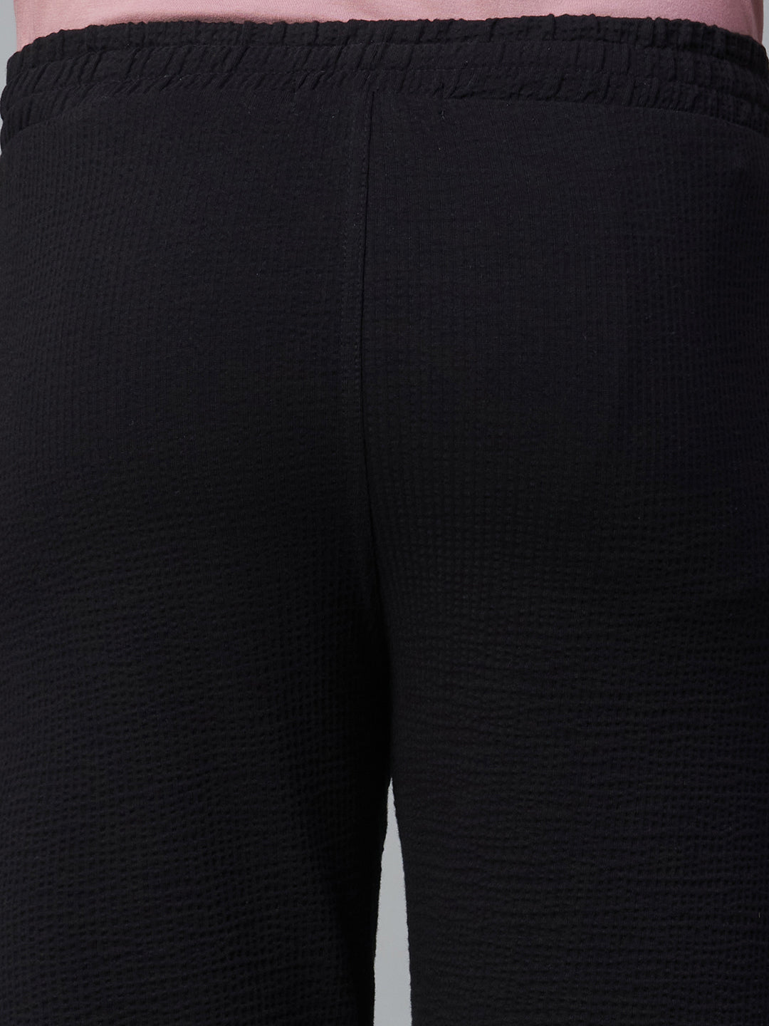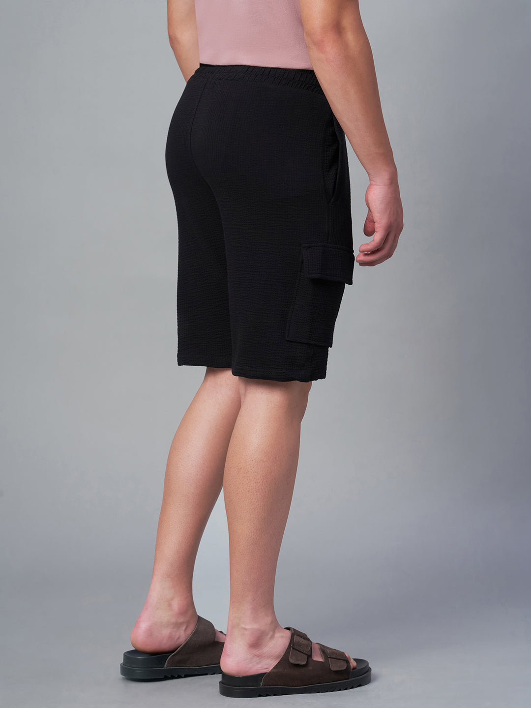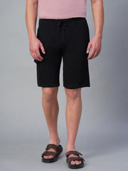 Men's Black Cotton Elastane Regular Fit Knit Shorts
