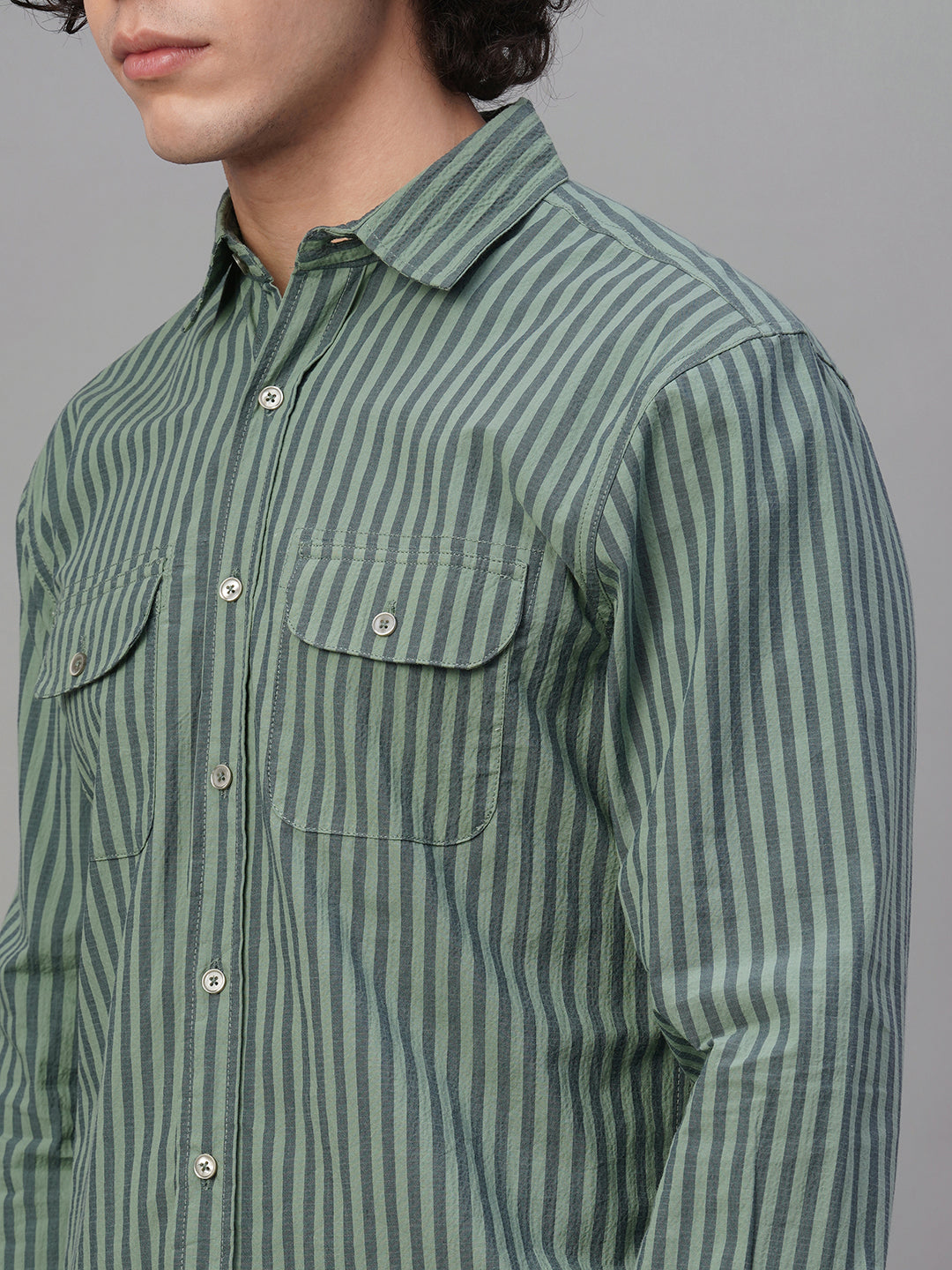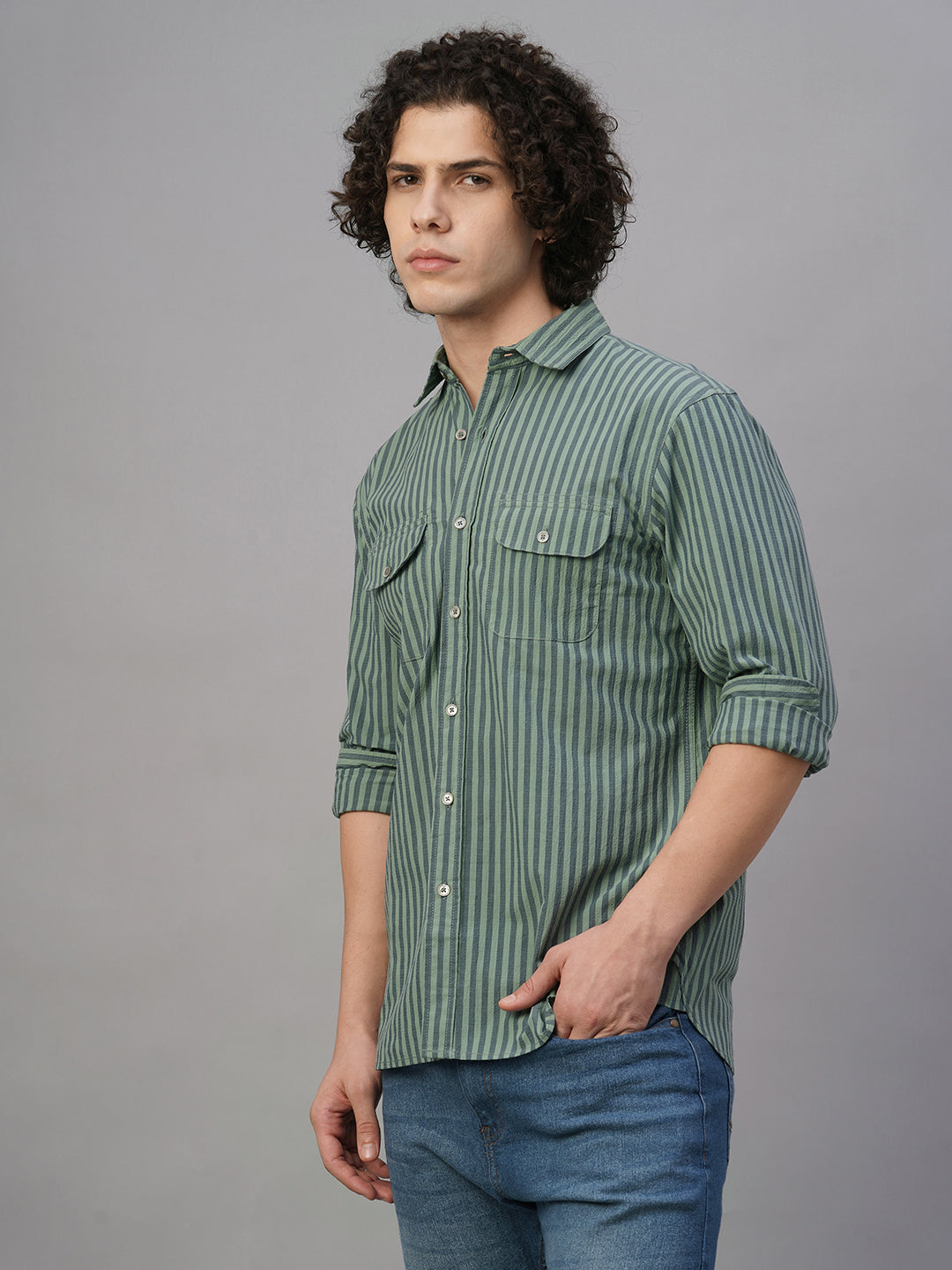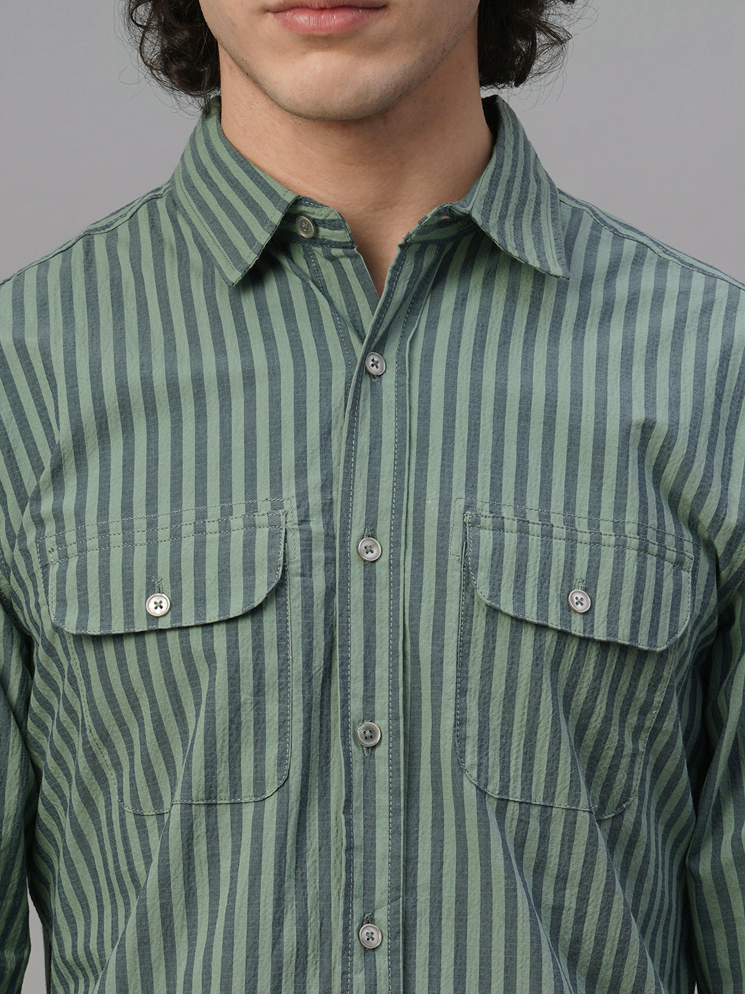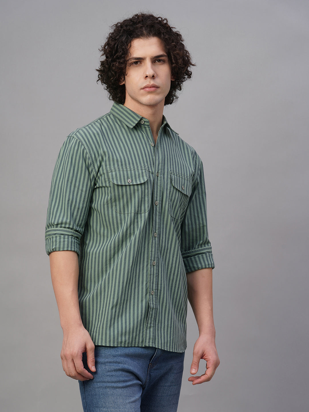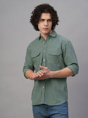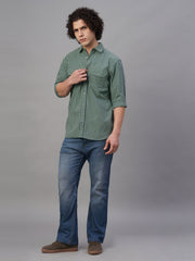 Men's Green Cotton Lycra Regular Fit Shirt