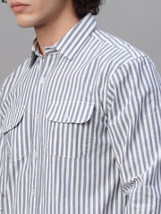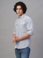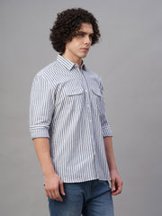 Men's Navy Cotton Lycra Regular Fit Shirt