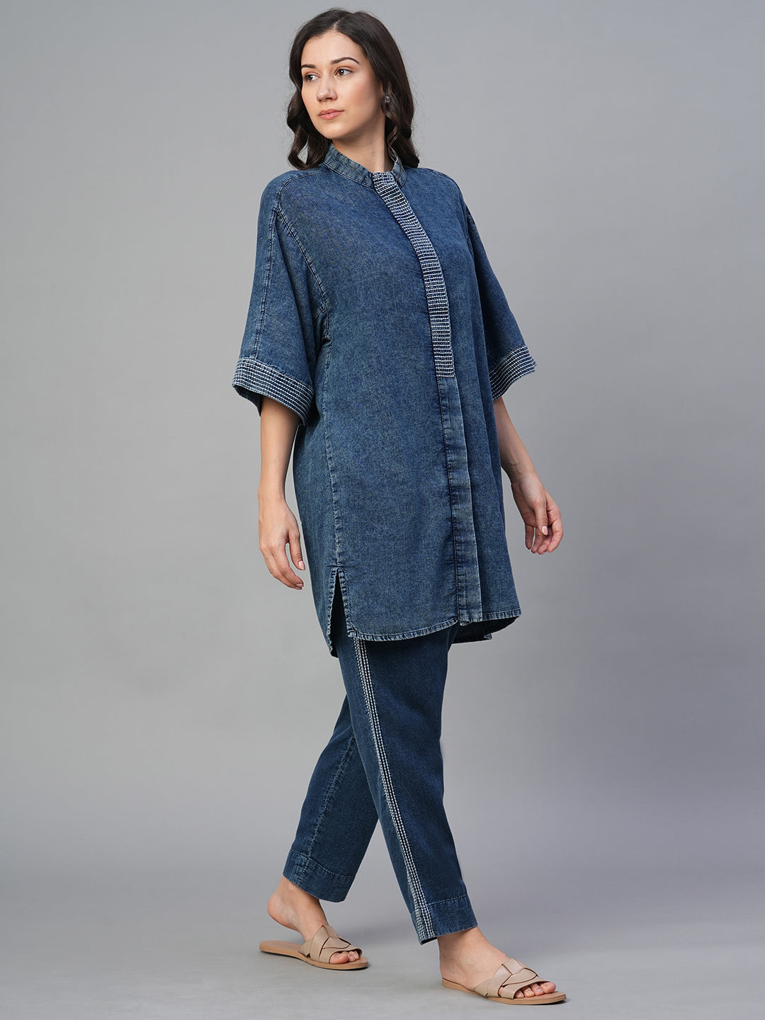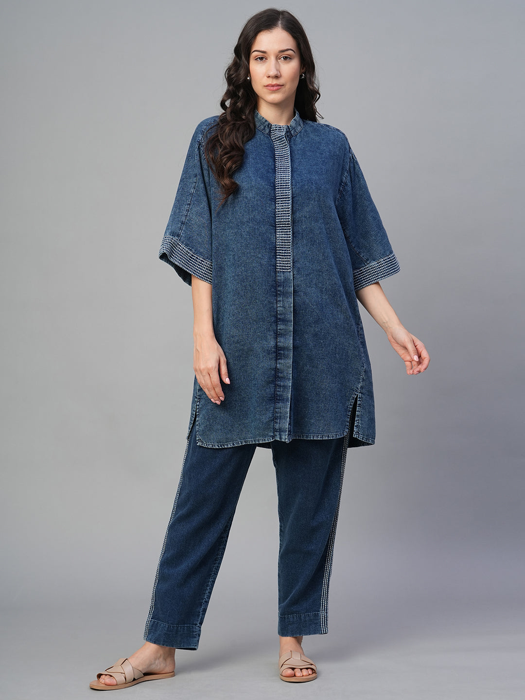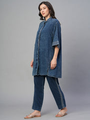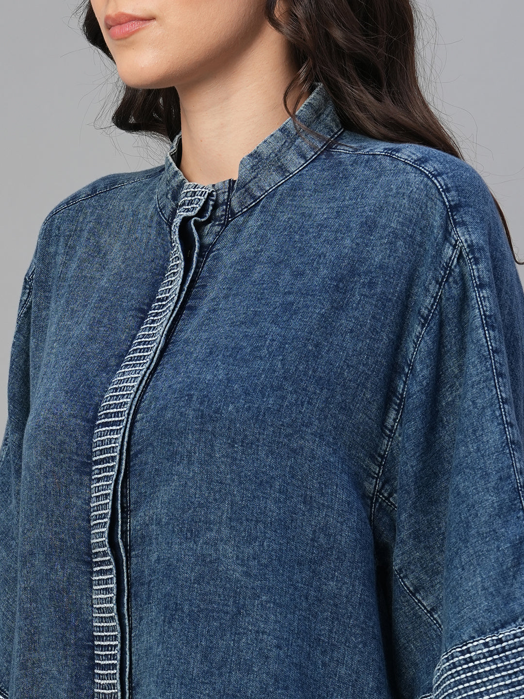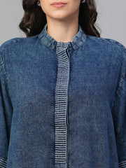 Women's Indigo 100% Cotton Boxy Fit Blouse