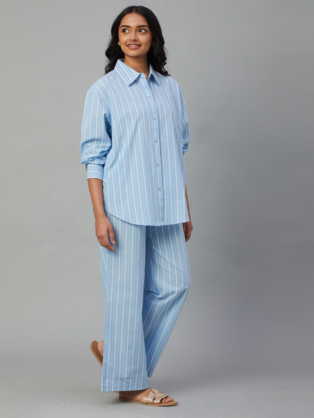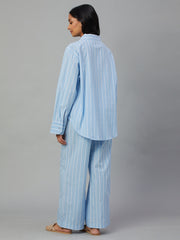 Women's Blue 100% Cotton Boxy Fit Pyjama Suit