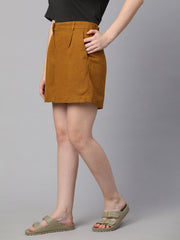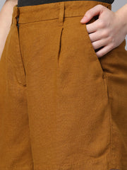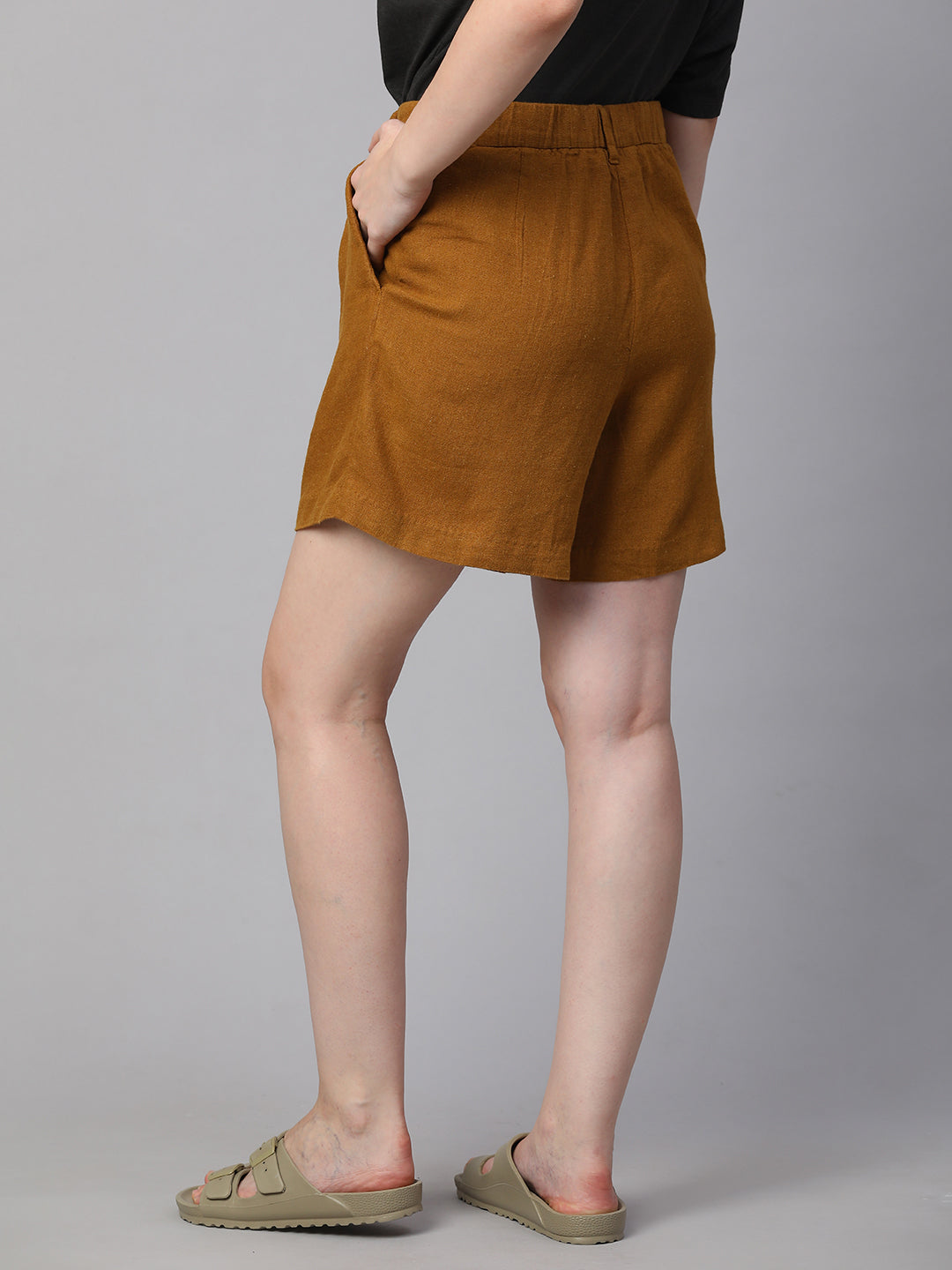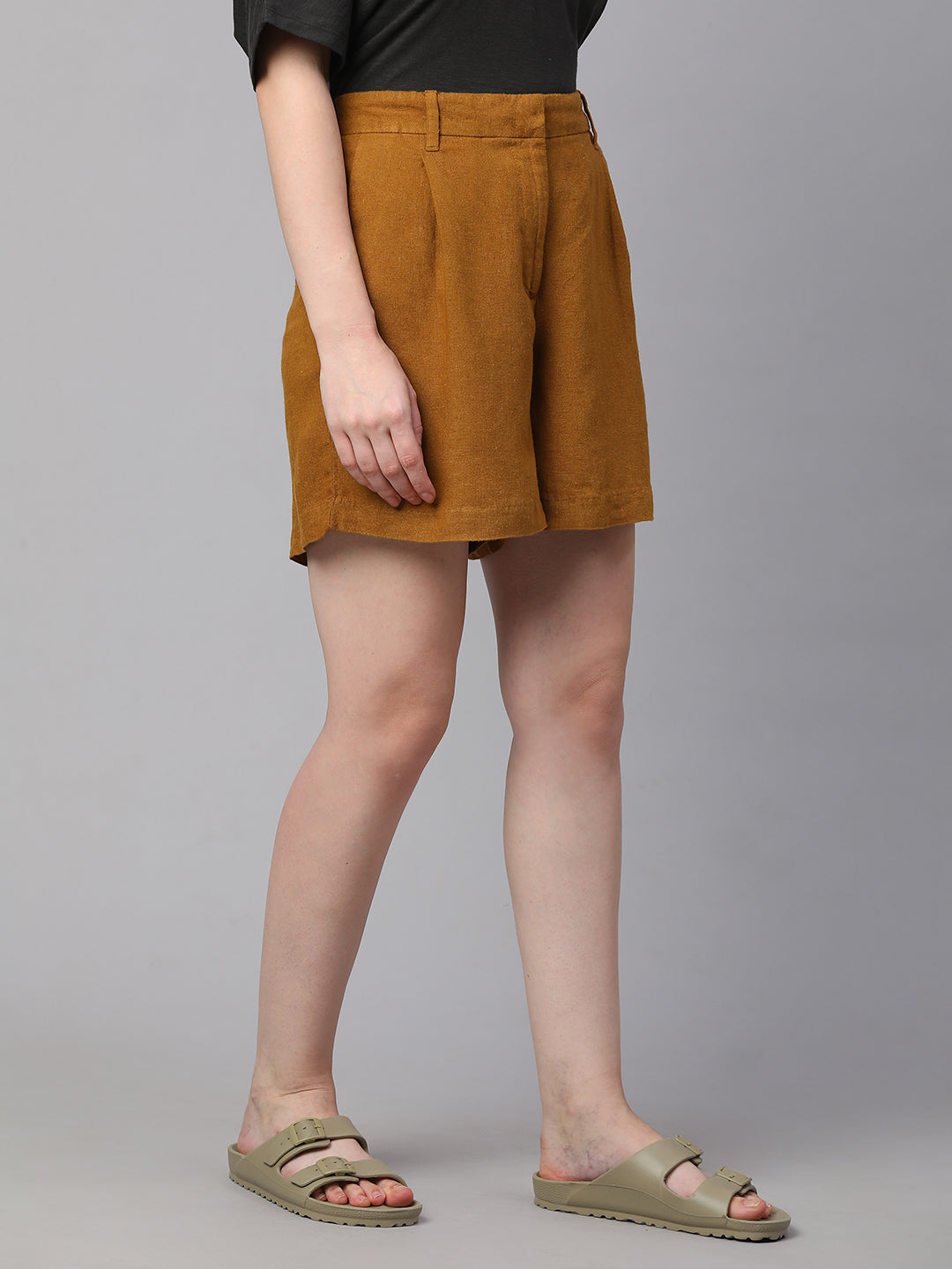 Women's Mustard Linen Viscose Regular Fit Shorts