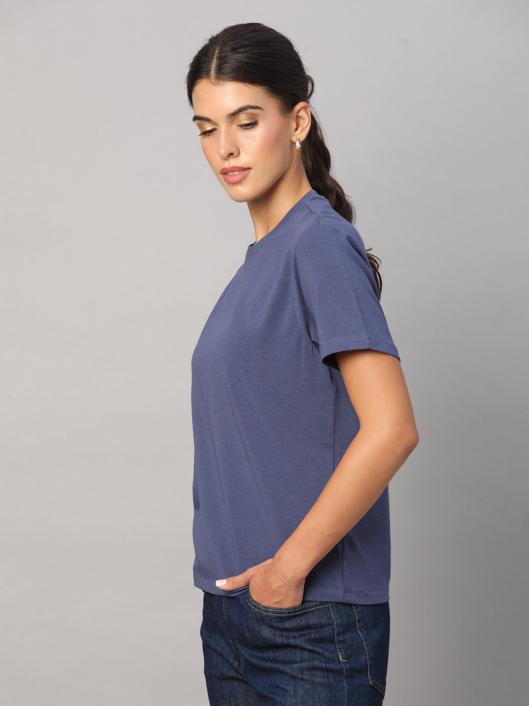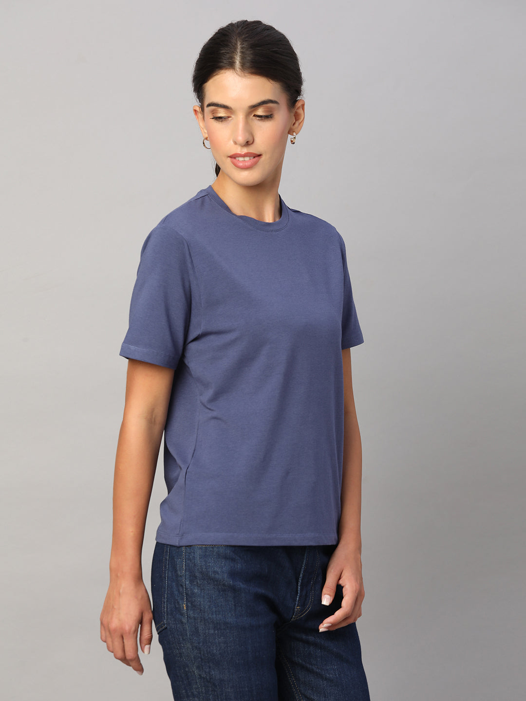 Women's Lavender Cotton Bamboo Elastane Regular Fit Tshirt