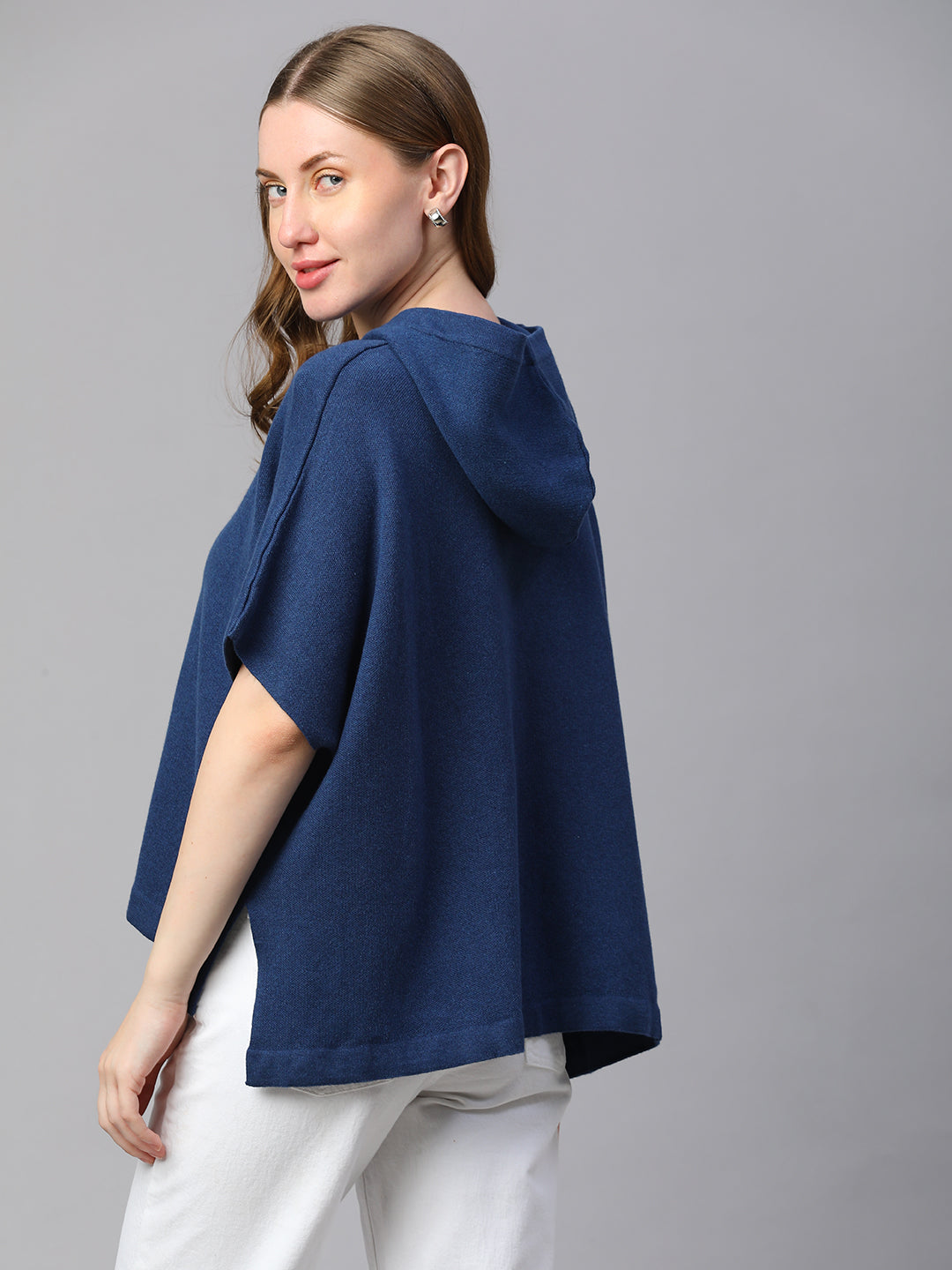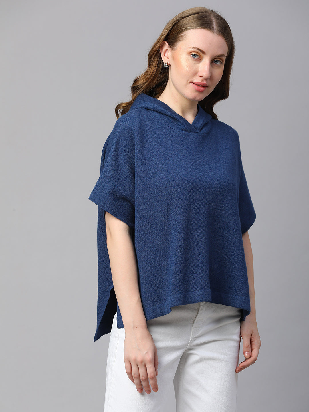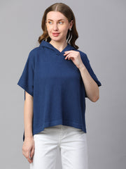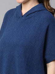 Women's Blue Melan Cotton Boxy Fit Tshirt