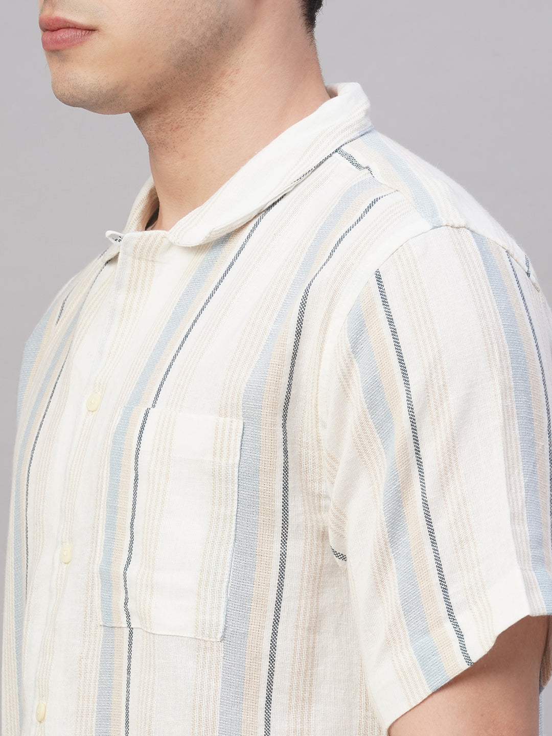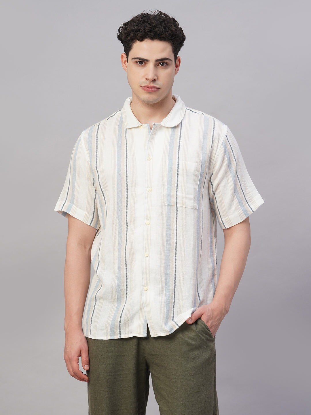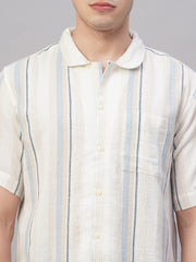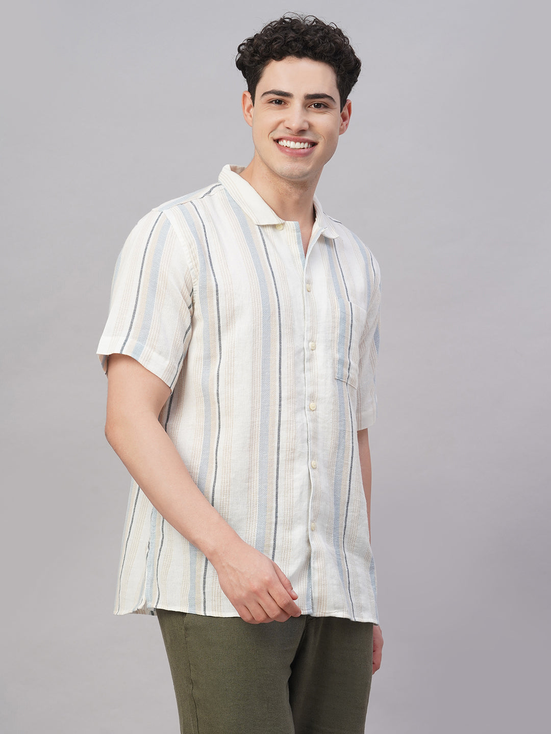 Men's White/Sky Cotton Flax Regular Fit Shirt