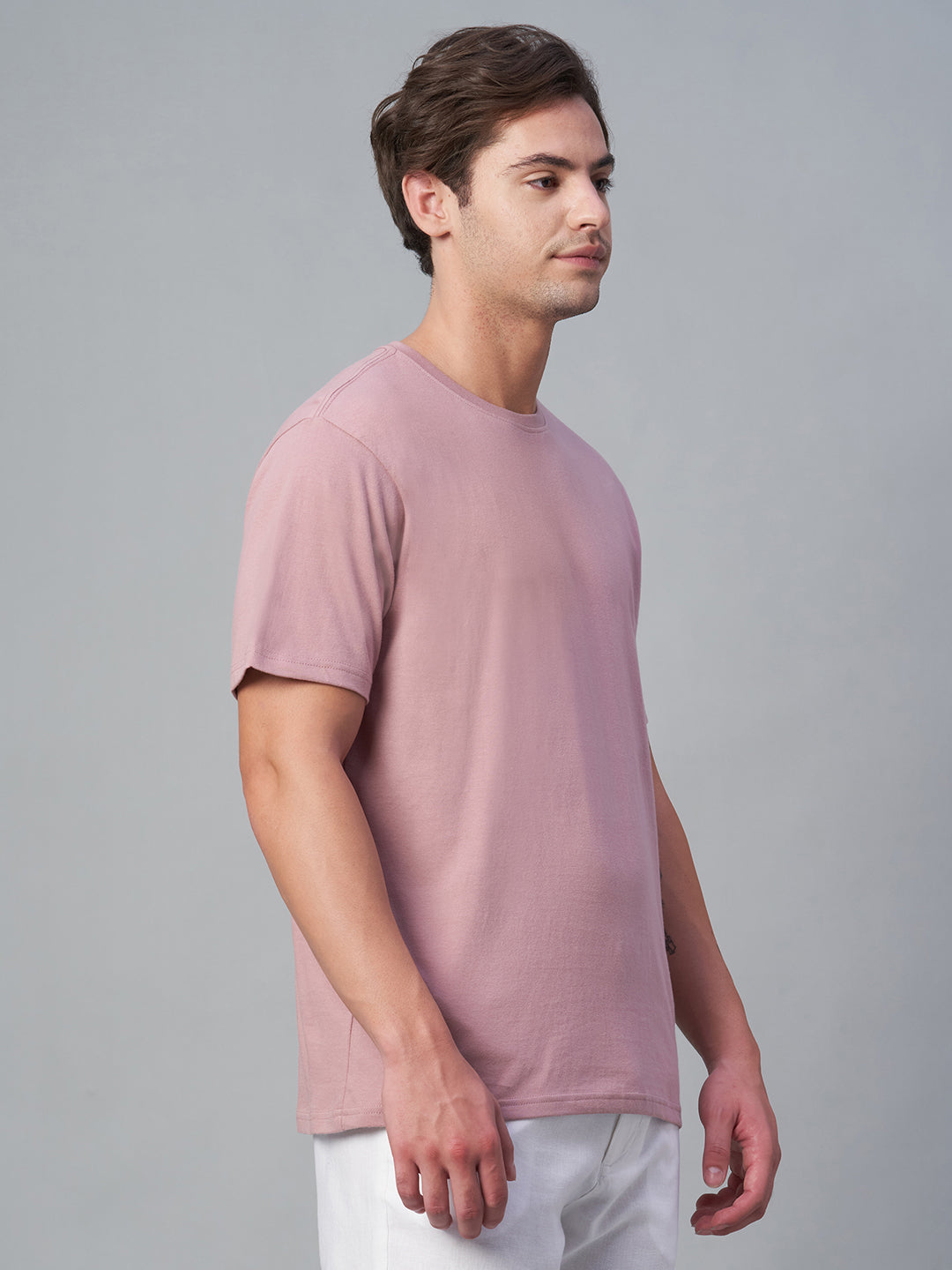 Men's Pink 100% Cotton Regular Fit Tshirt