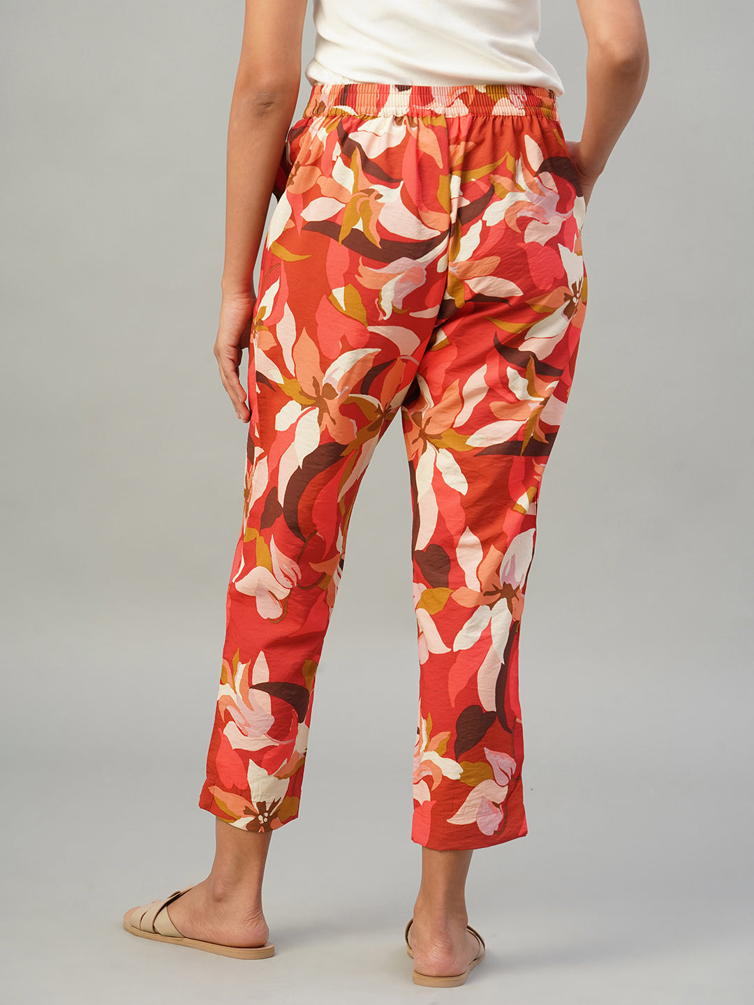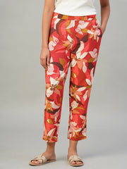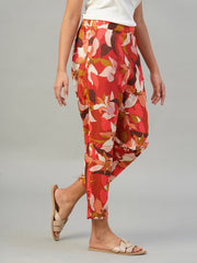 Women's Red 100% Viscose Regular Fit Pant