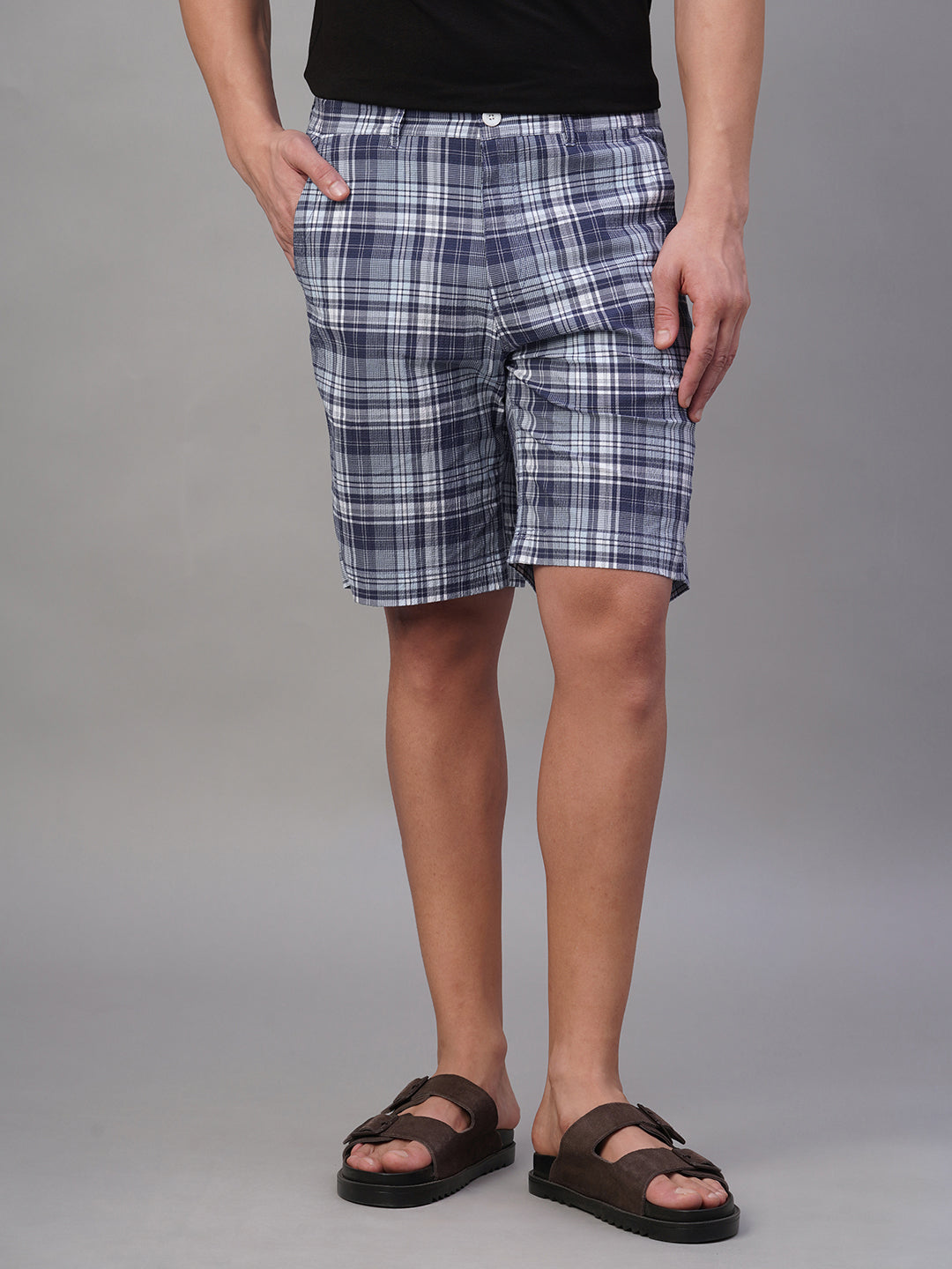 Men's Navy 100% Cotton Regular Fit Shorts