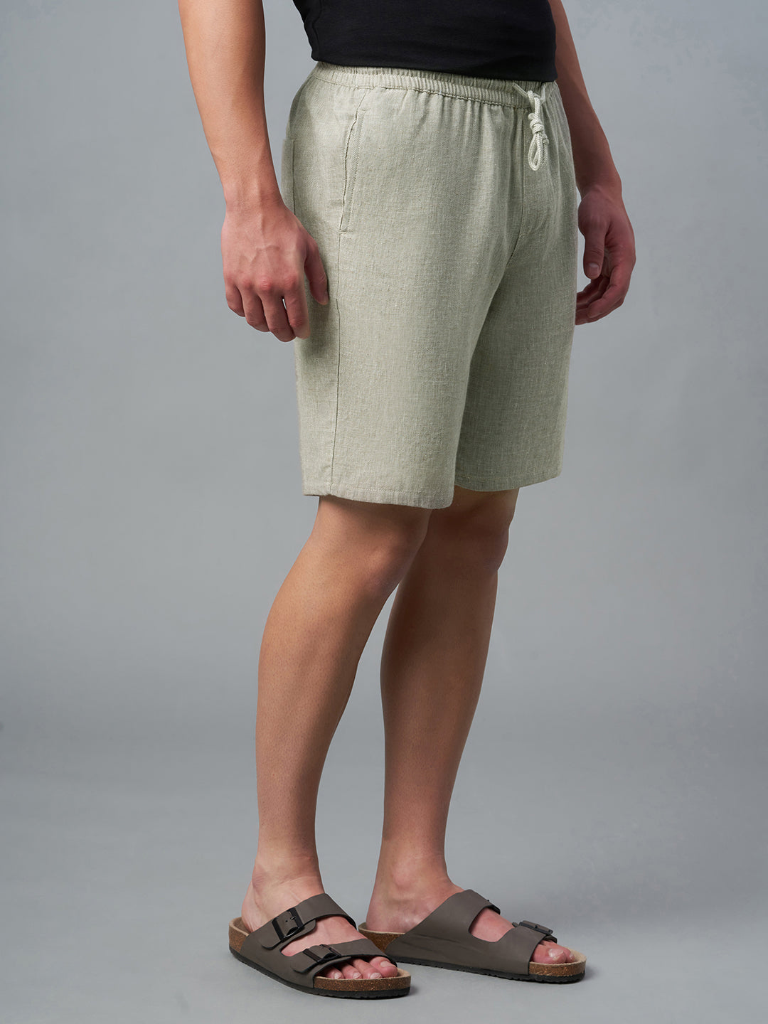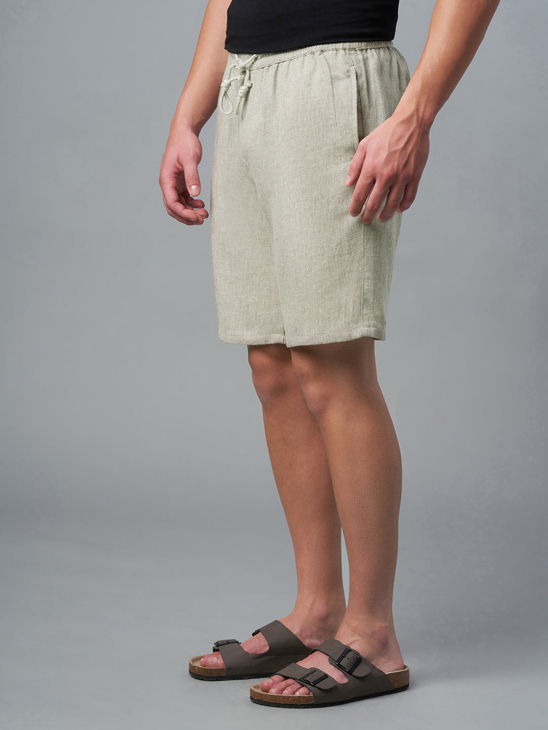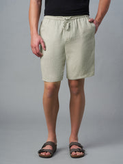 Men's Lt Brown Cotton Linen Regular Fit Shorts