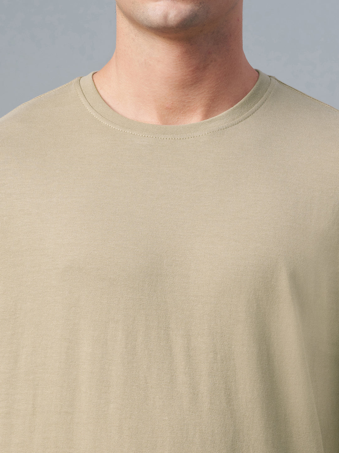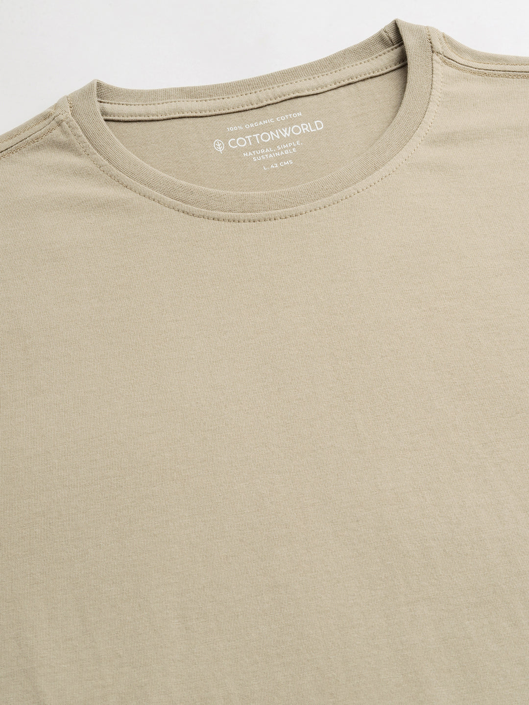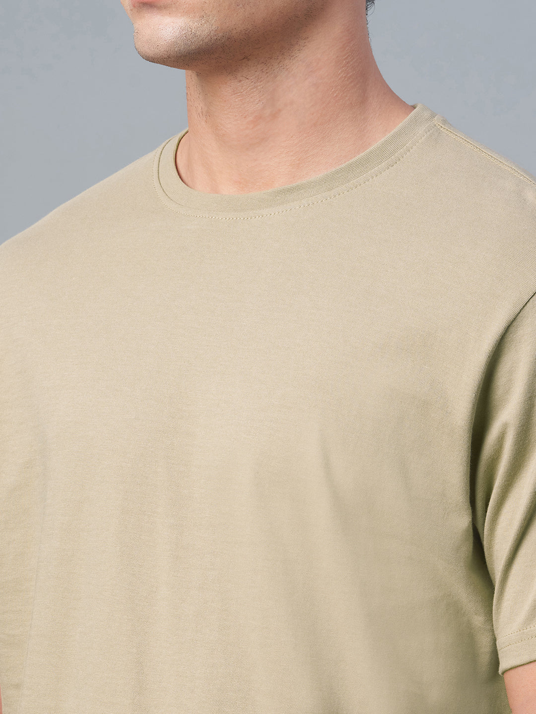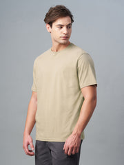 Men's Khaki 100% Cotton Regular Fit Tshirt