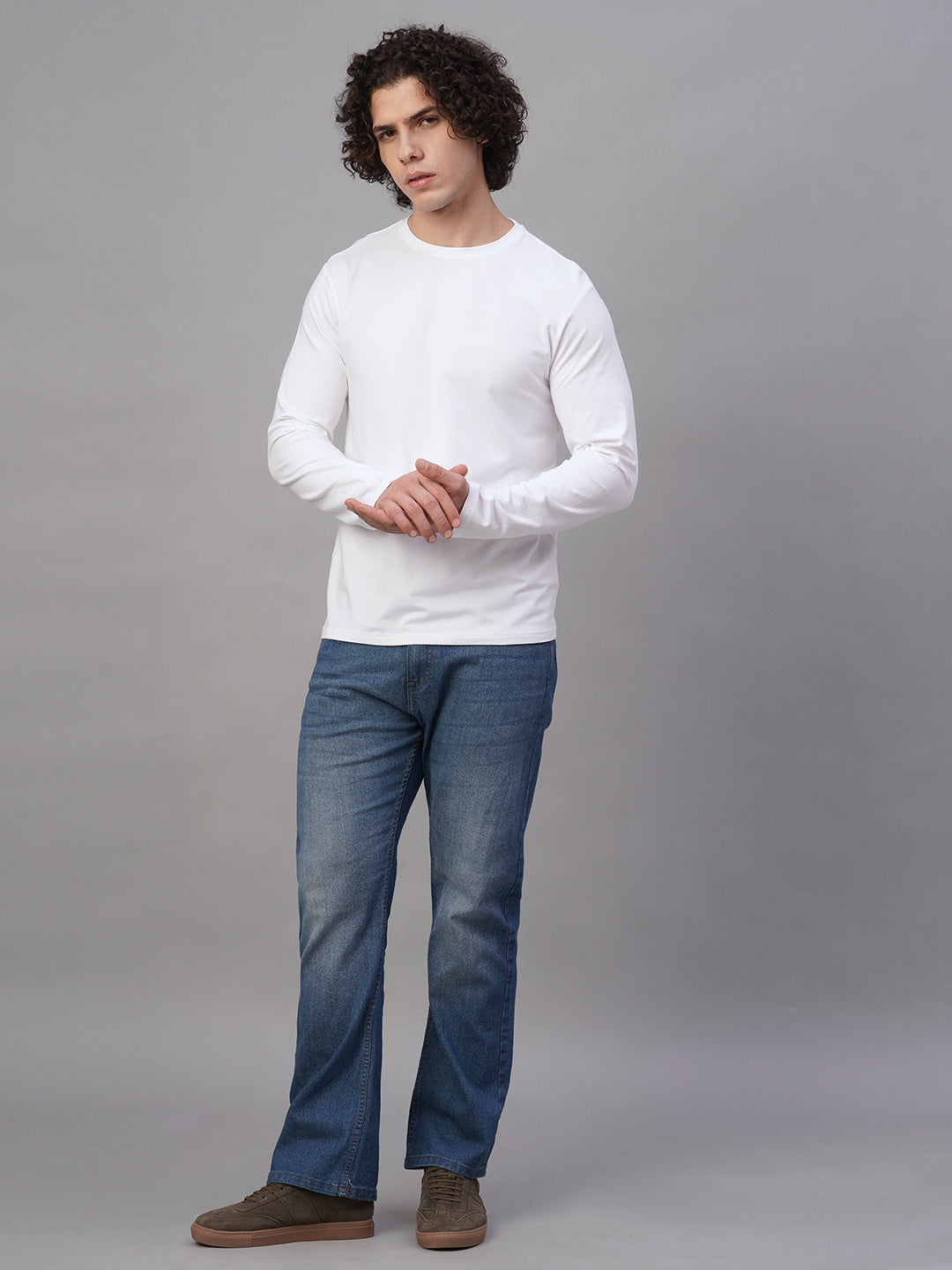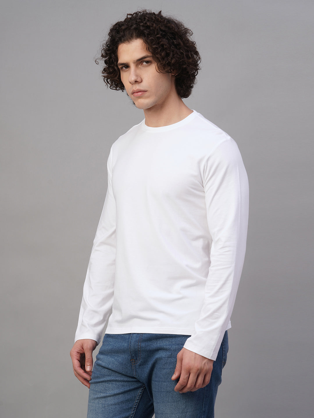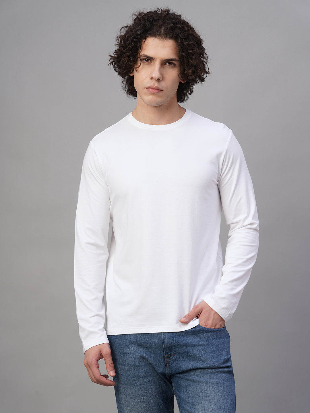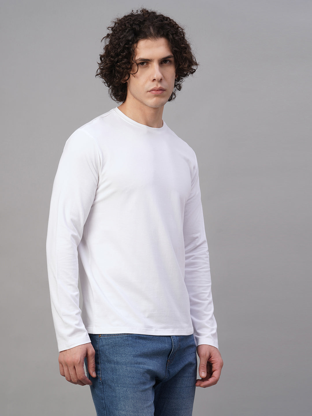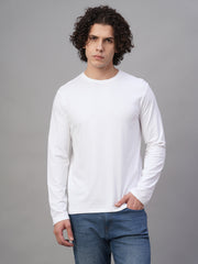 Men's White Cotton Bamboo Elastane Slim Fit Tshirt