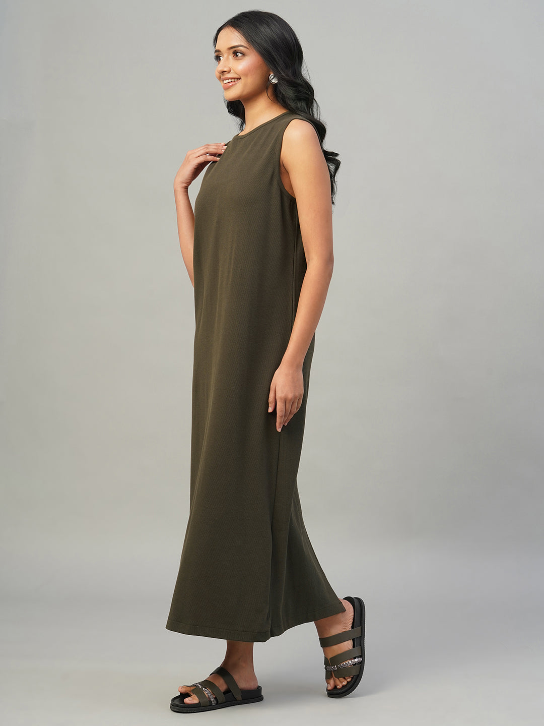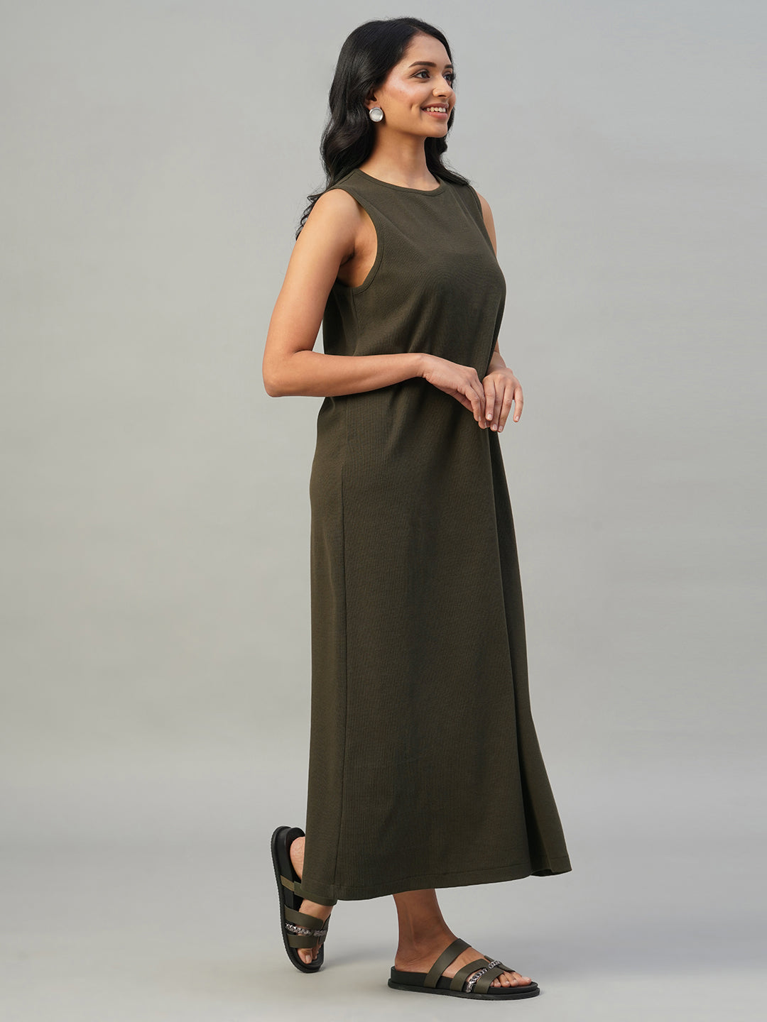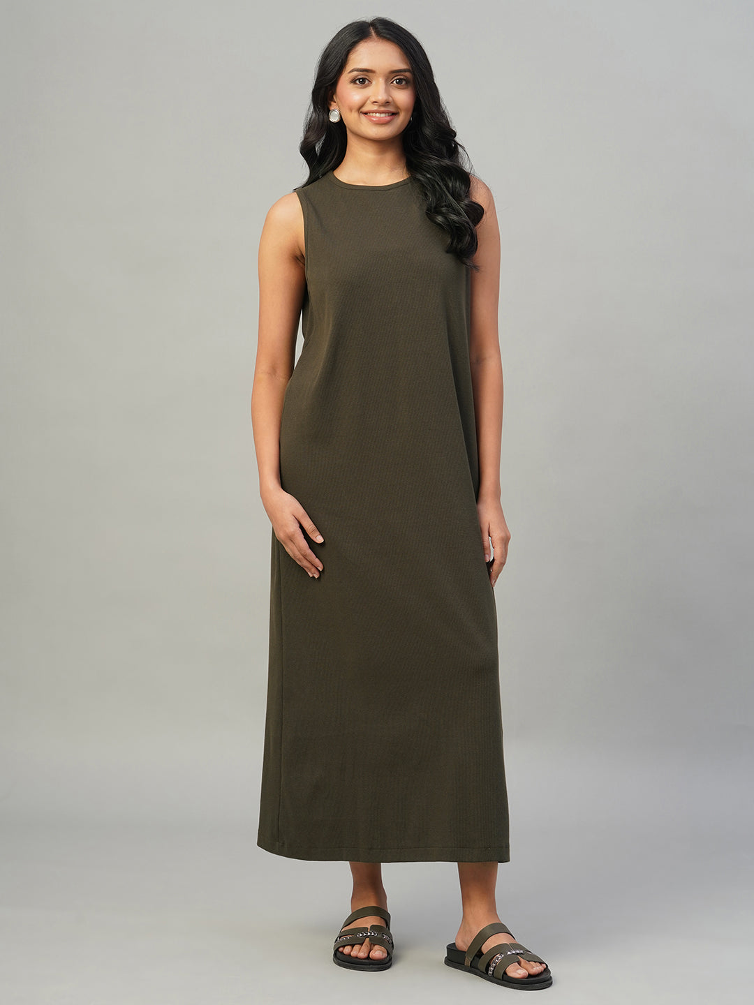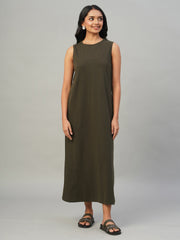 Women's Brown Cotton Elastane Regular Fit Knit dress