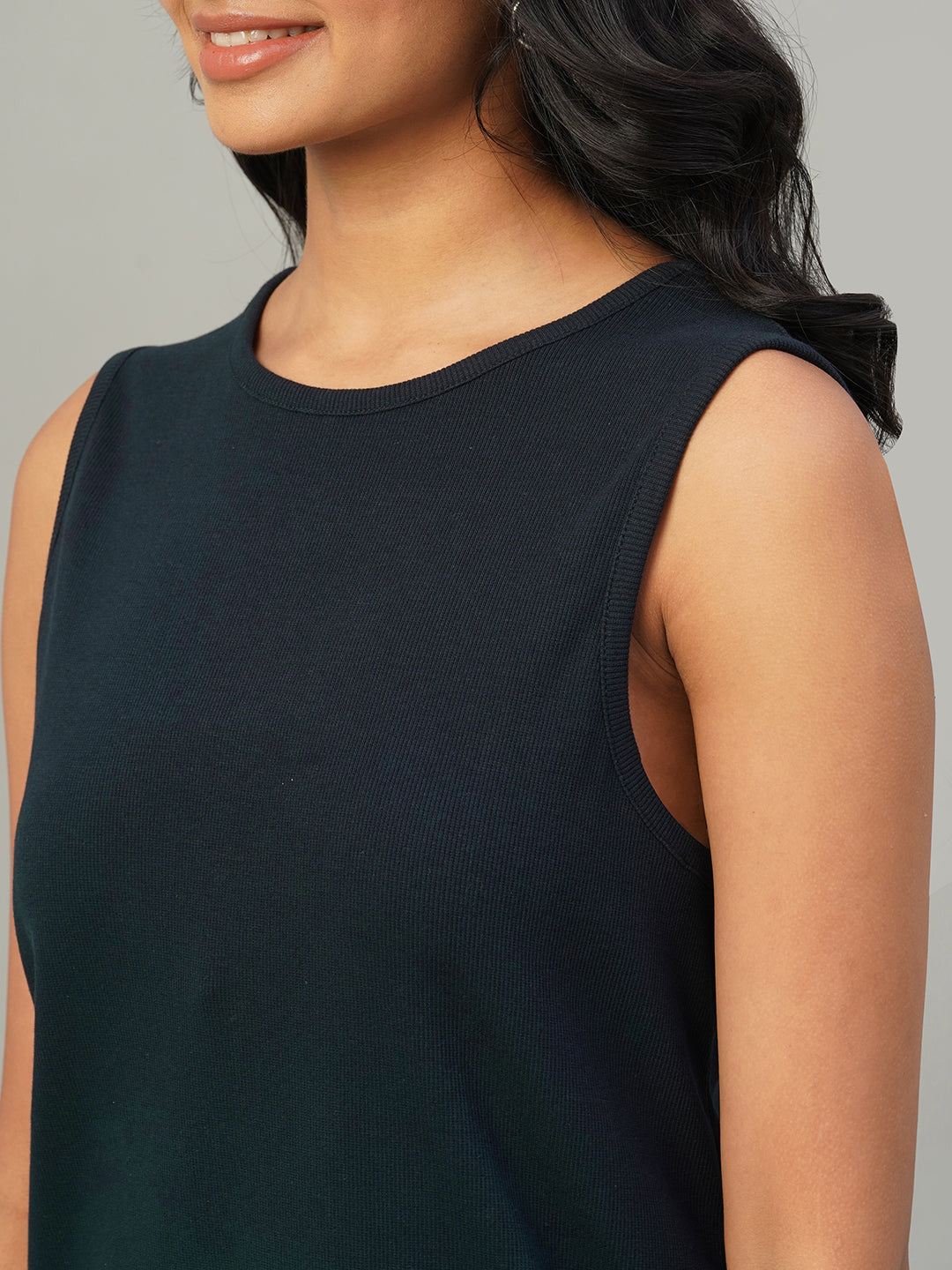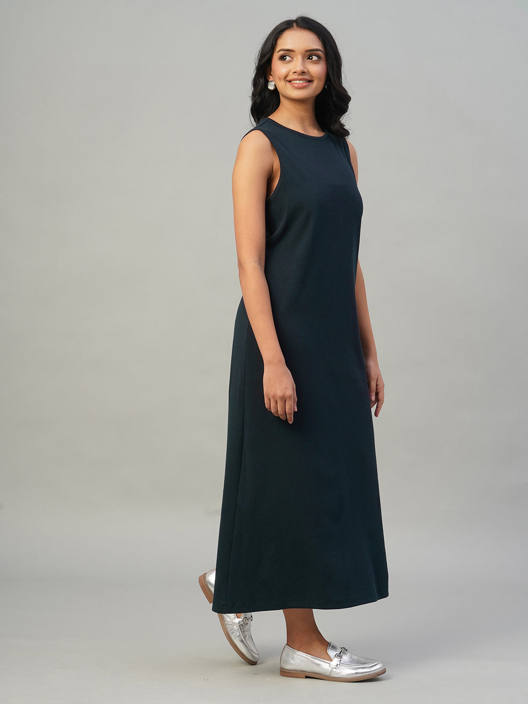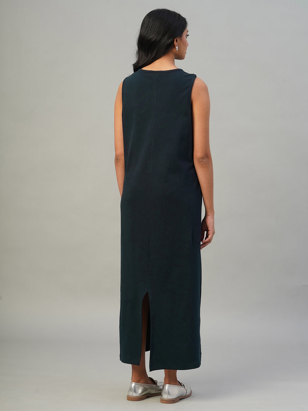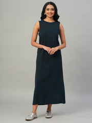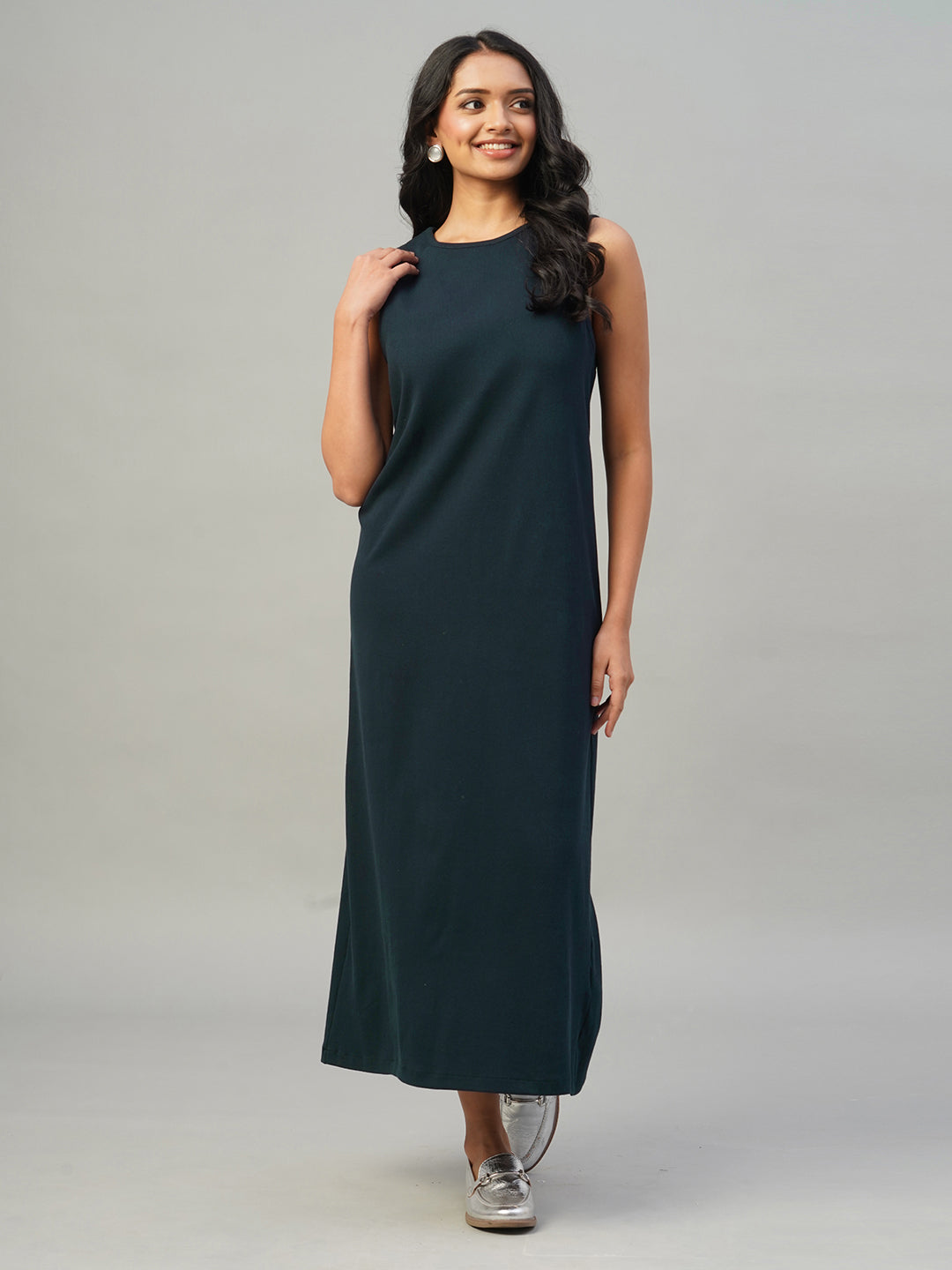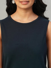 Women's Navy Cotton Elastane Regular Fit Knit Dress