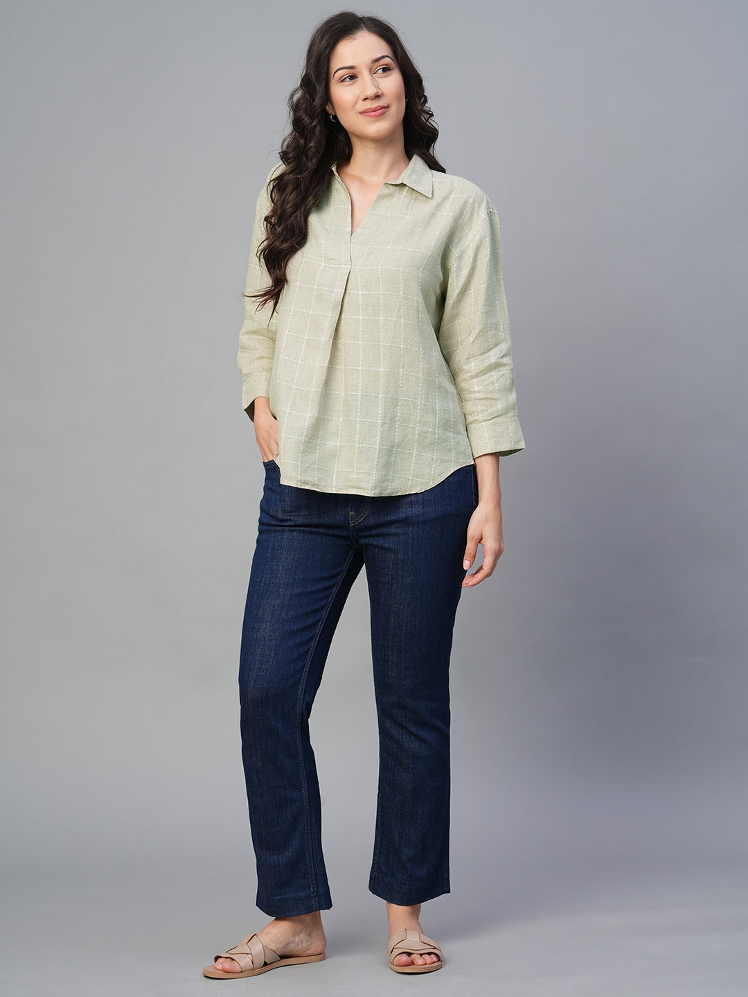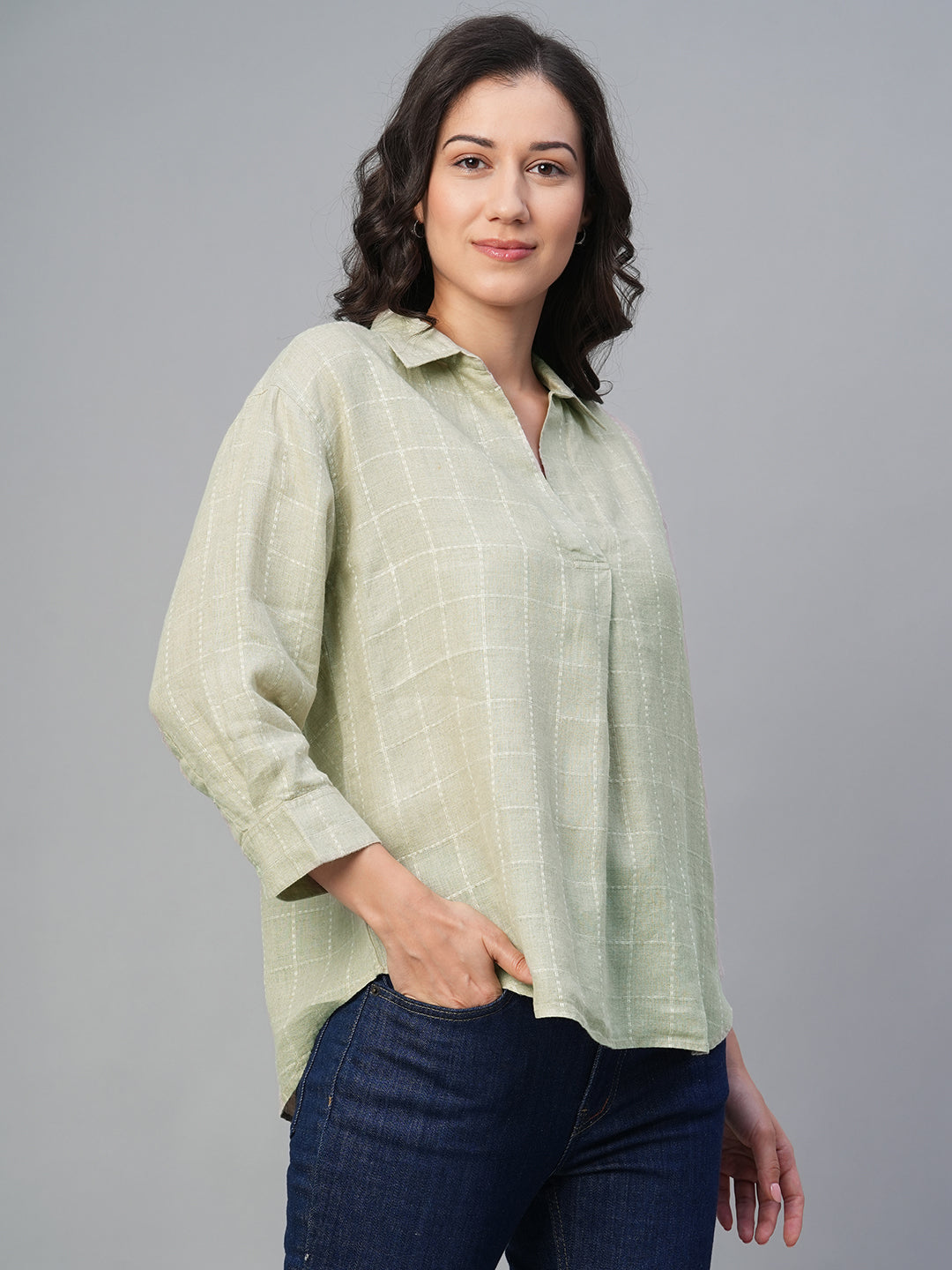 Women's Natural 100% Linen Regular Fit Blouse