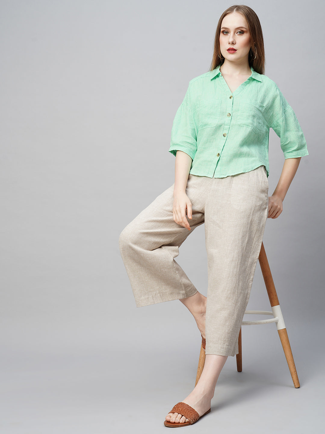 - FABRIC COMPOSITION: 100% LINEN WOVEN SOLID CHAMBRAY