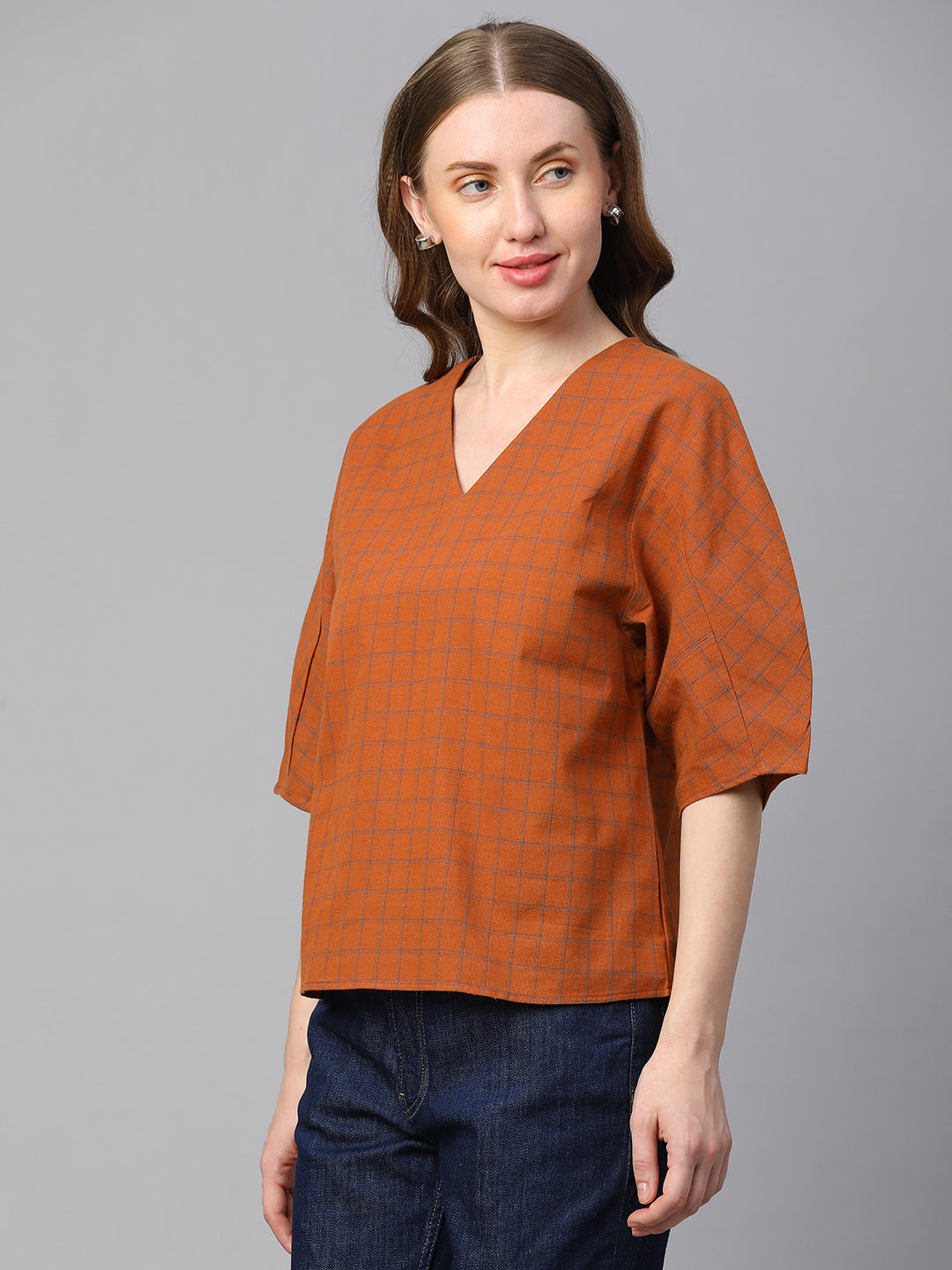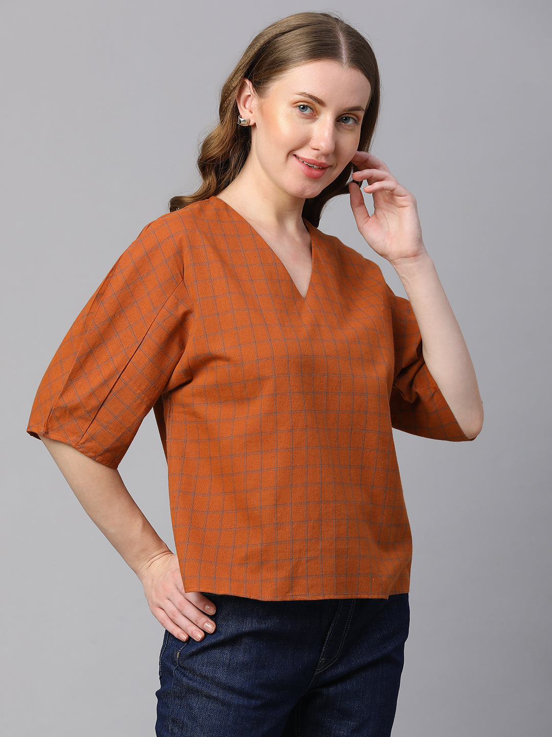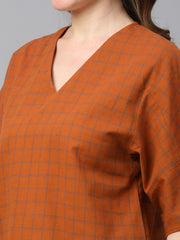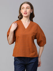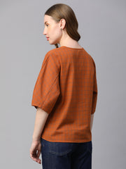 Women's Rust Cotton Linen Regular Fit Blouse