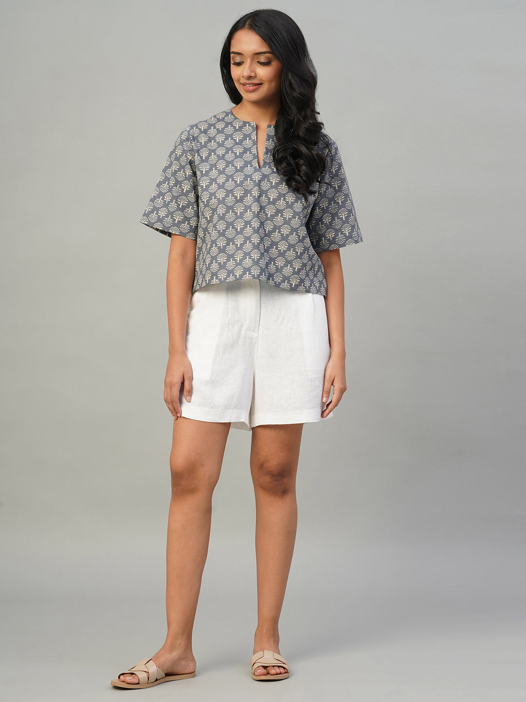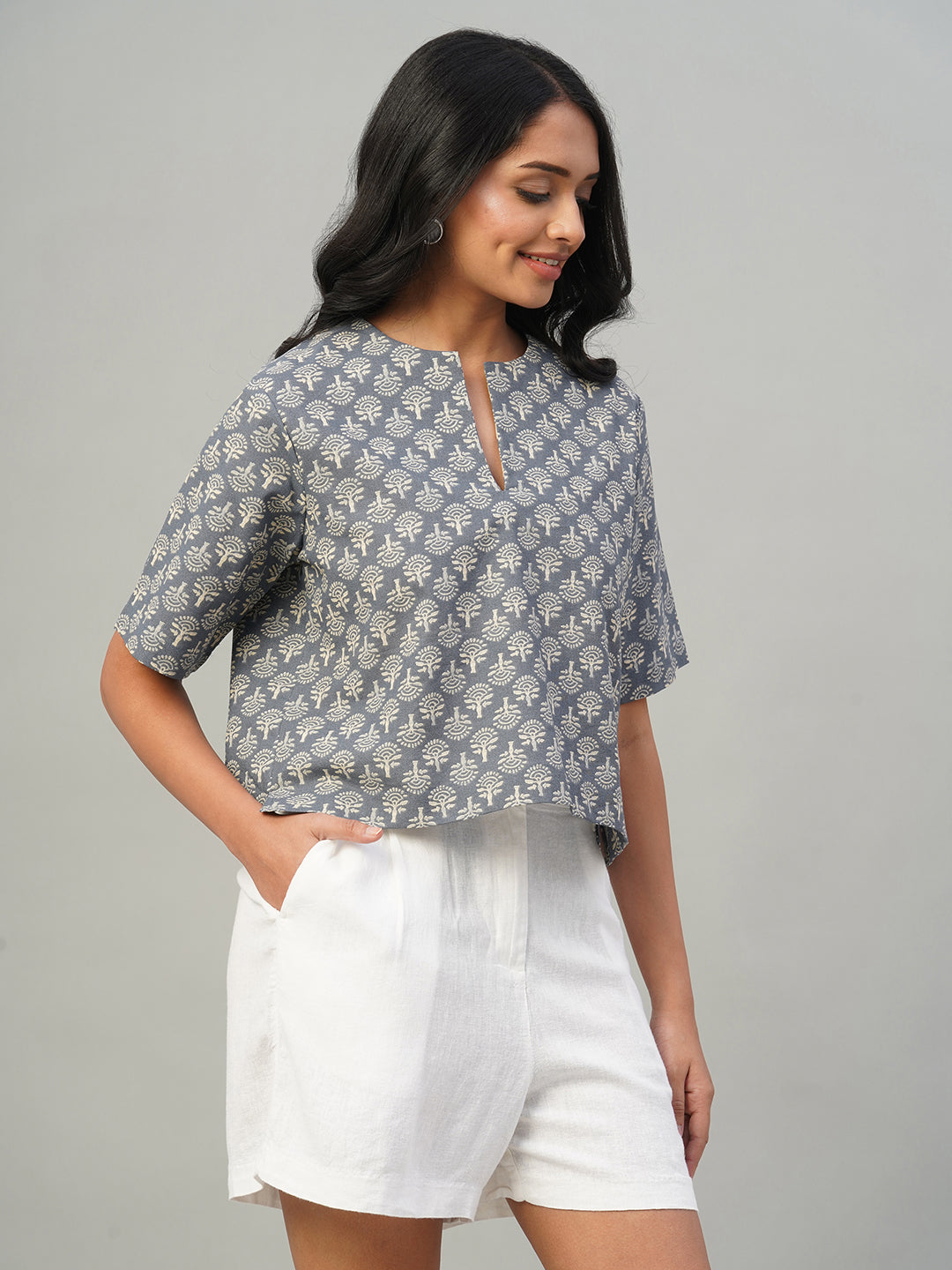 Women's Indigo 100% Cotton Regular Fit Blouse