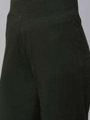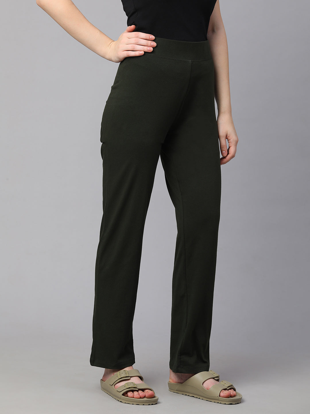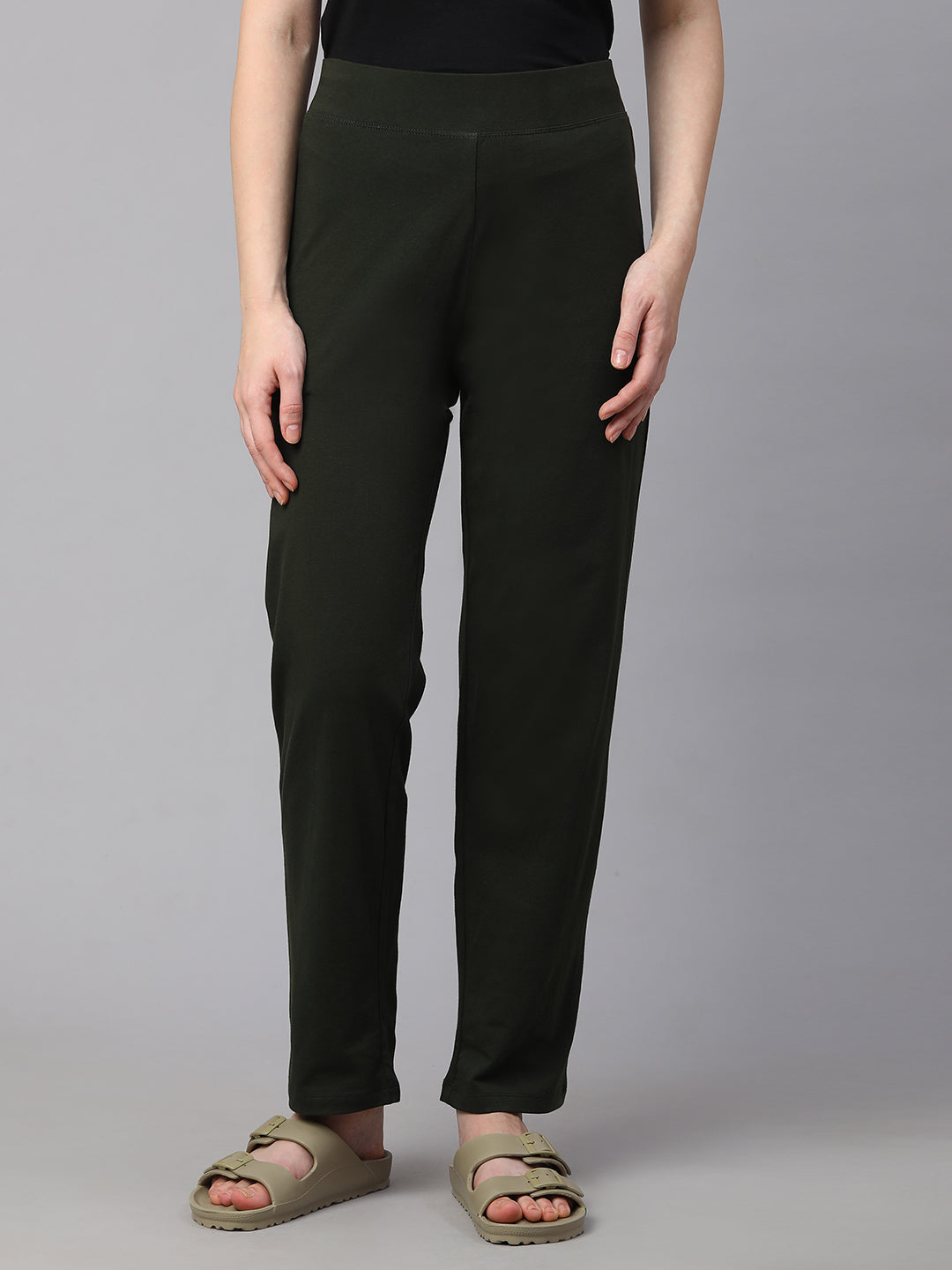 Women's Green Cotton Elastane Regular Fit Knit Pant