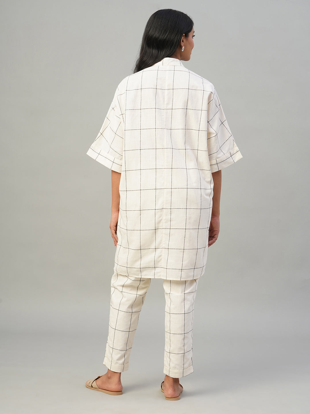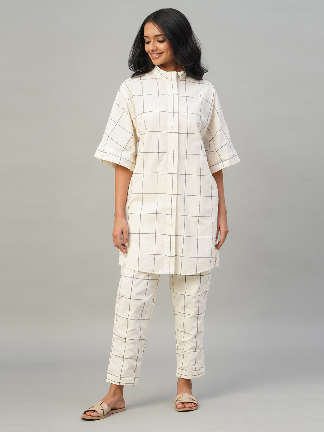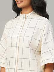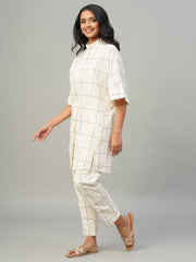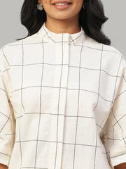 Women's Natural/Black 100% Cotton Boxy Fit Kurta