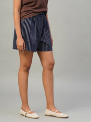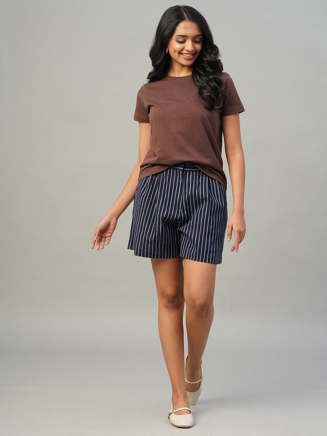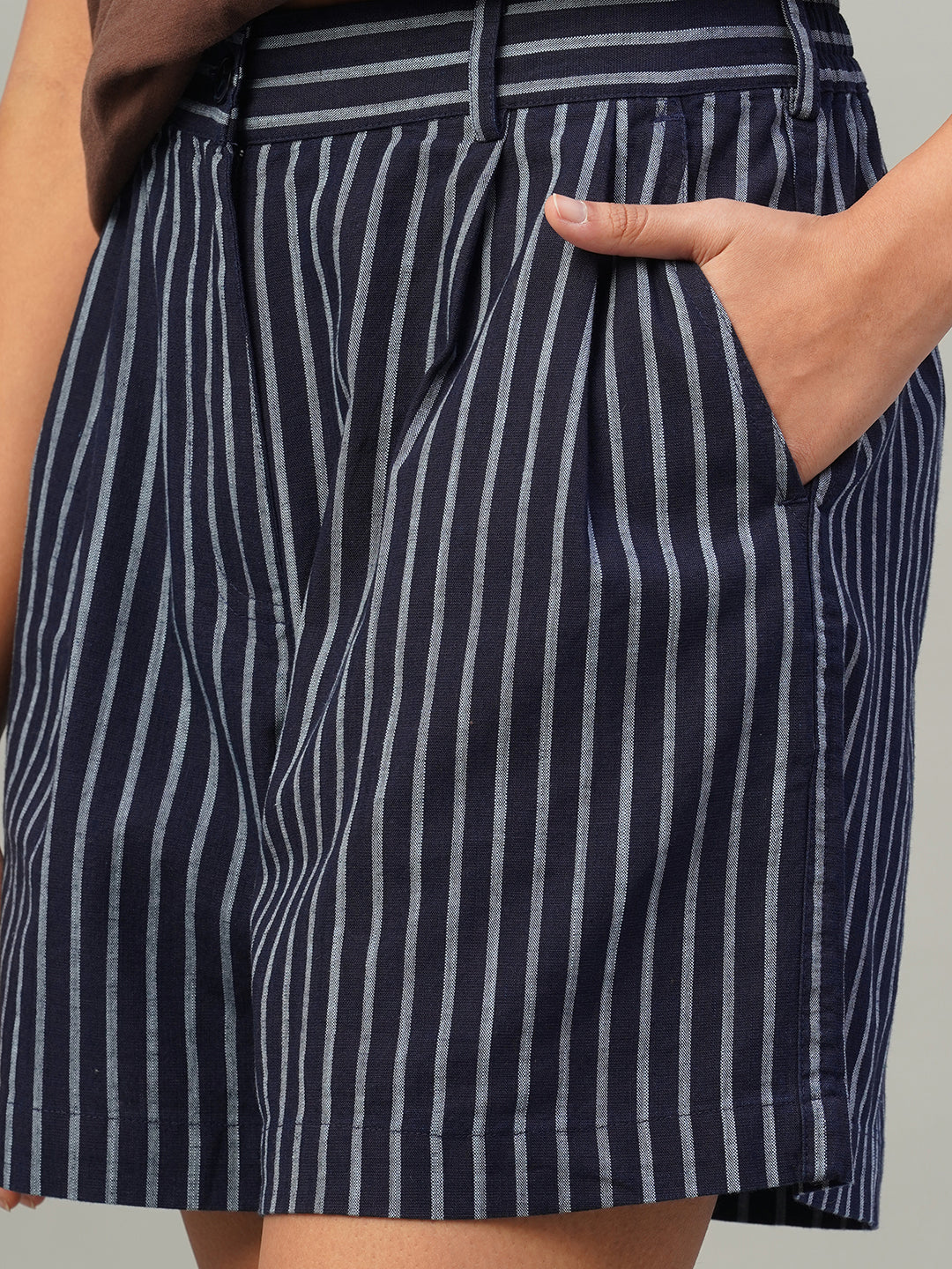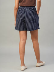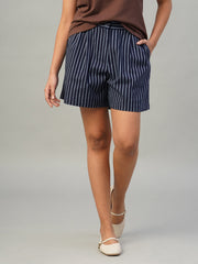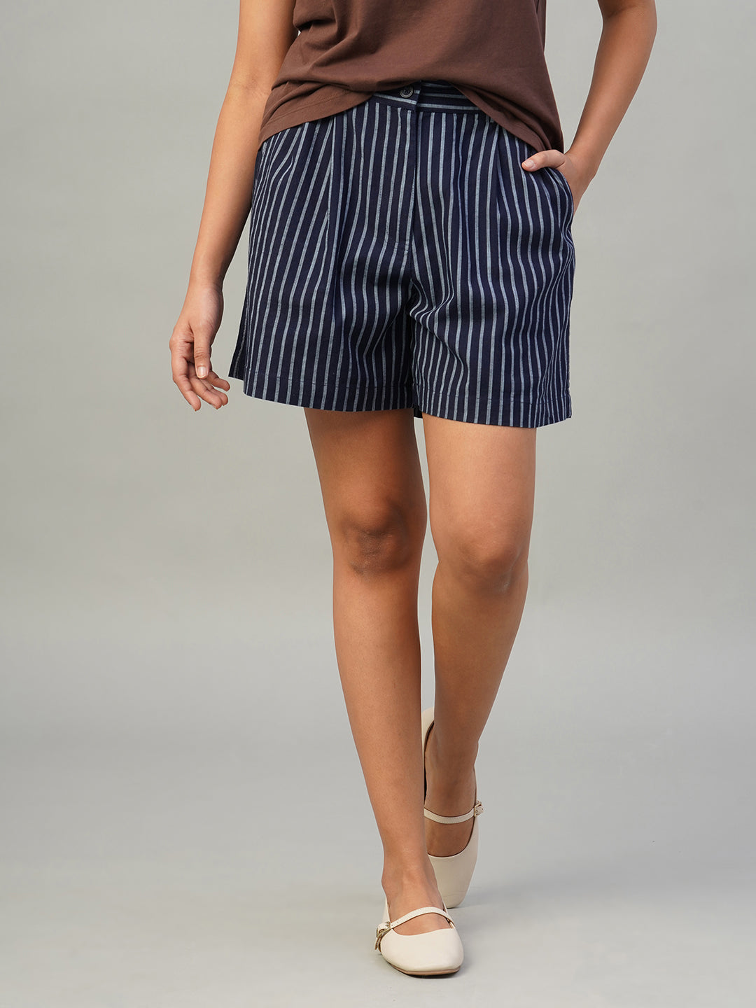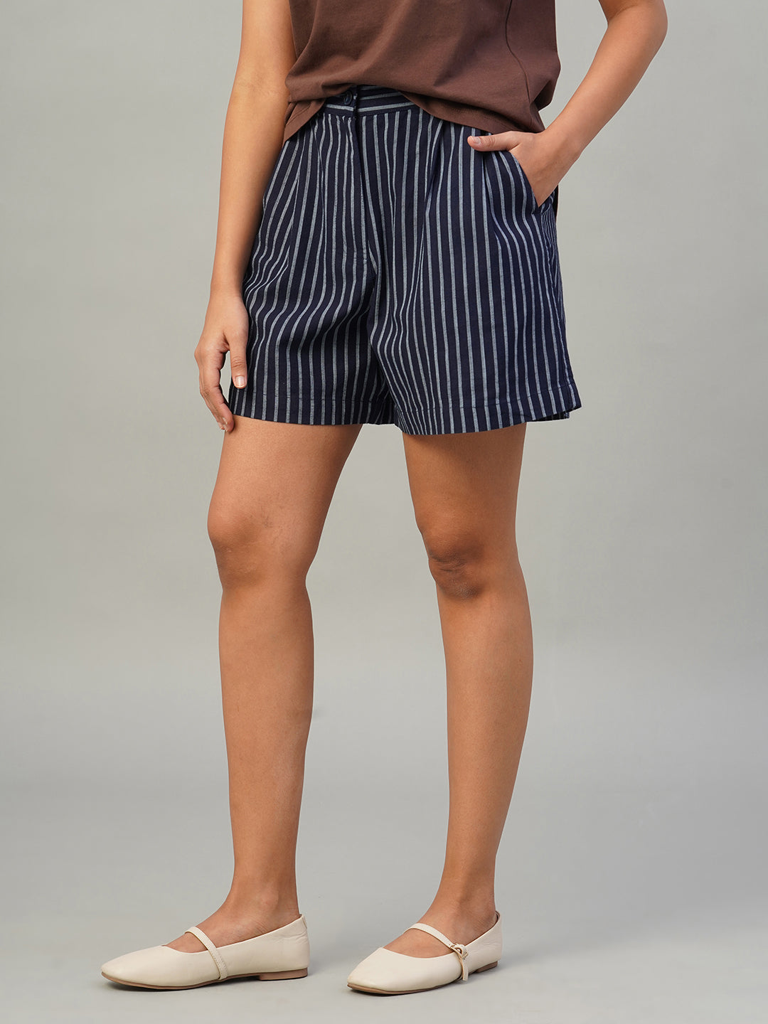 Women's Indigo Cotton Linen Regular Fit Shorts