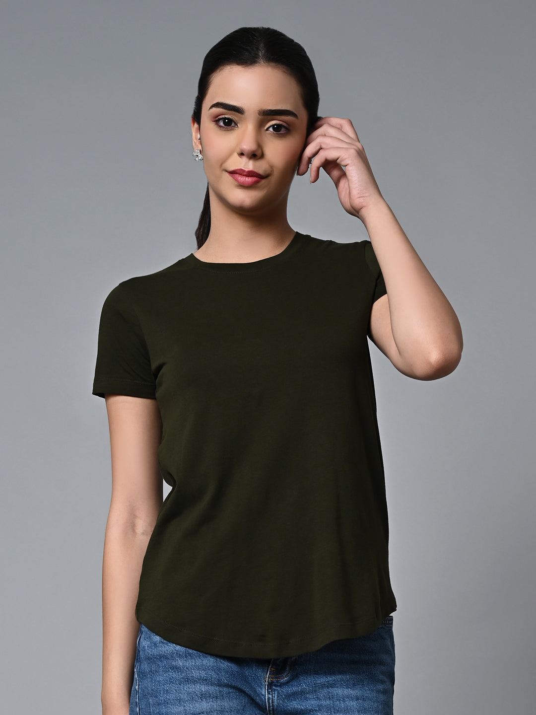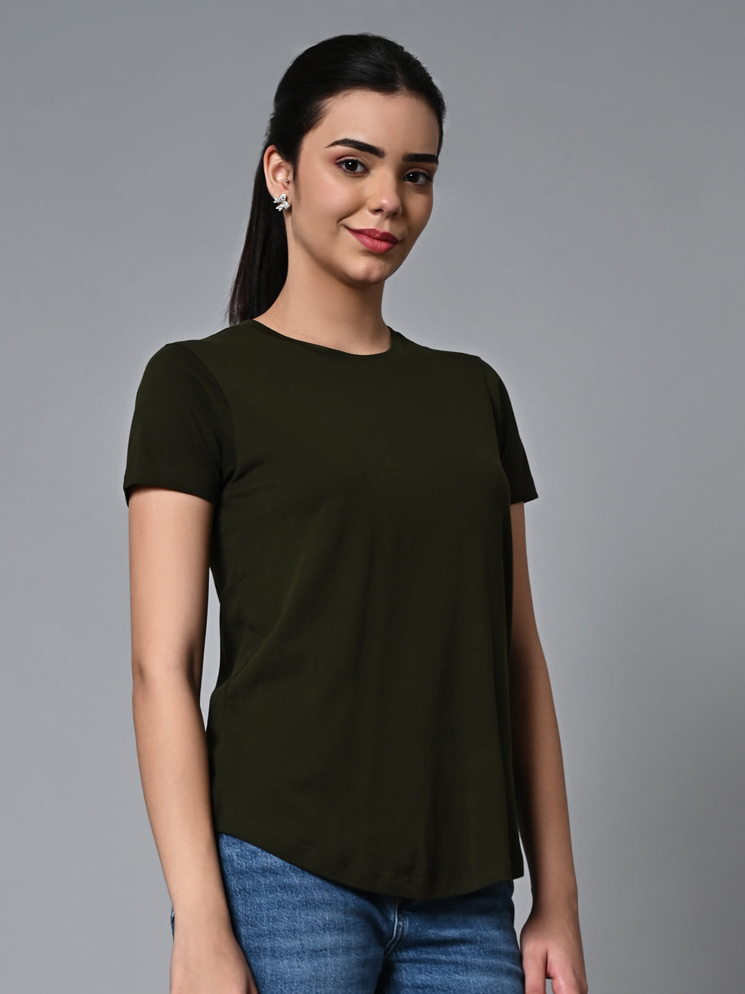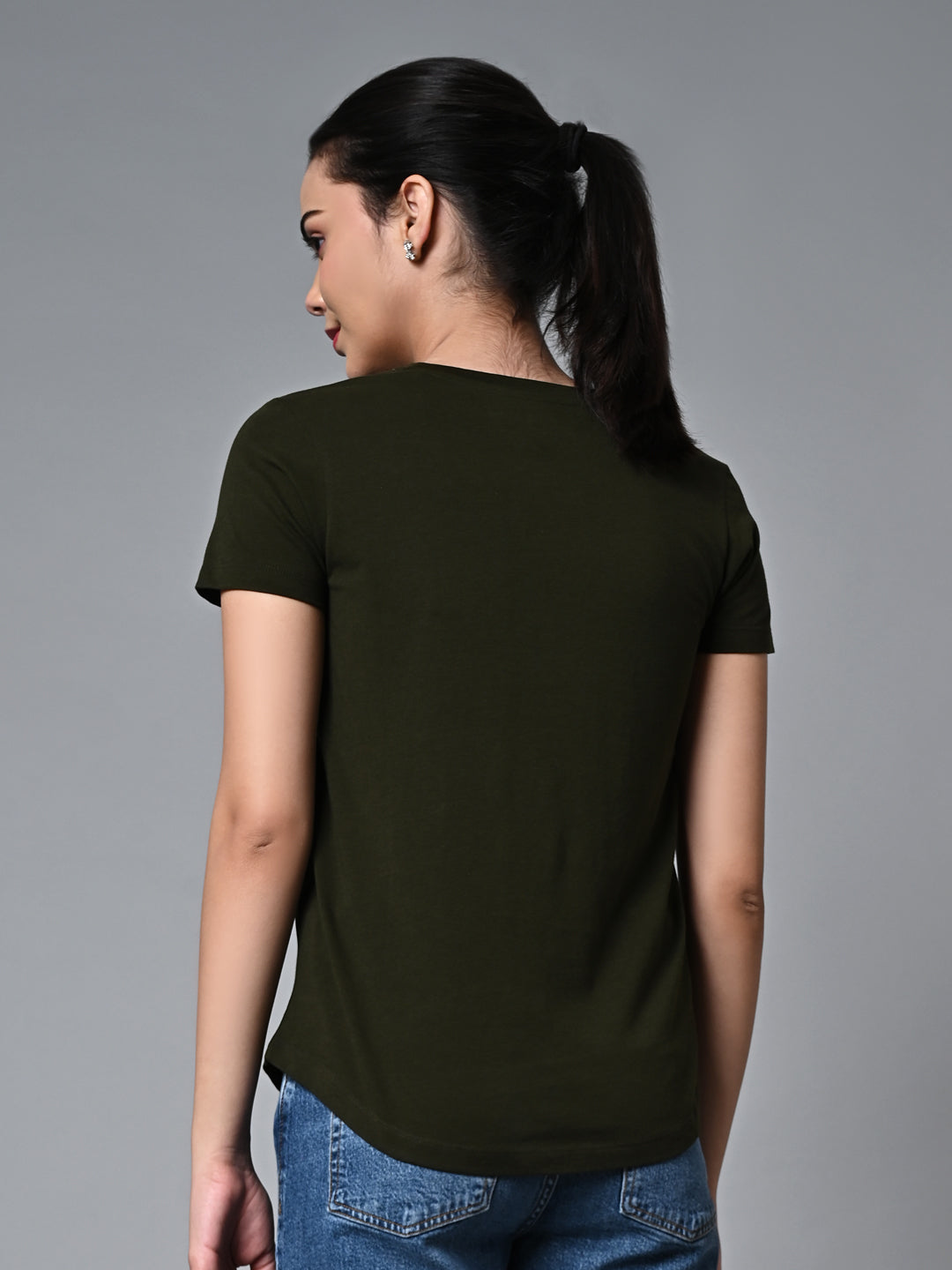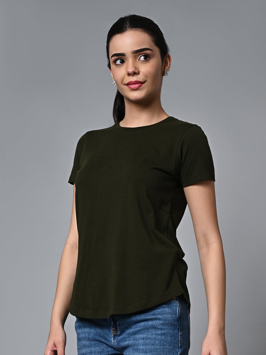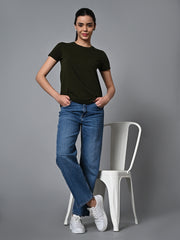 Women's Darkgreen Cotton Regular Fit Tshirt