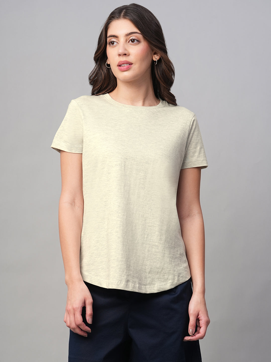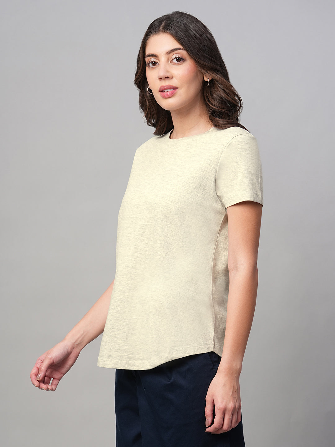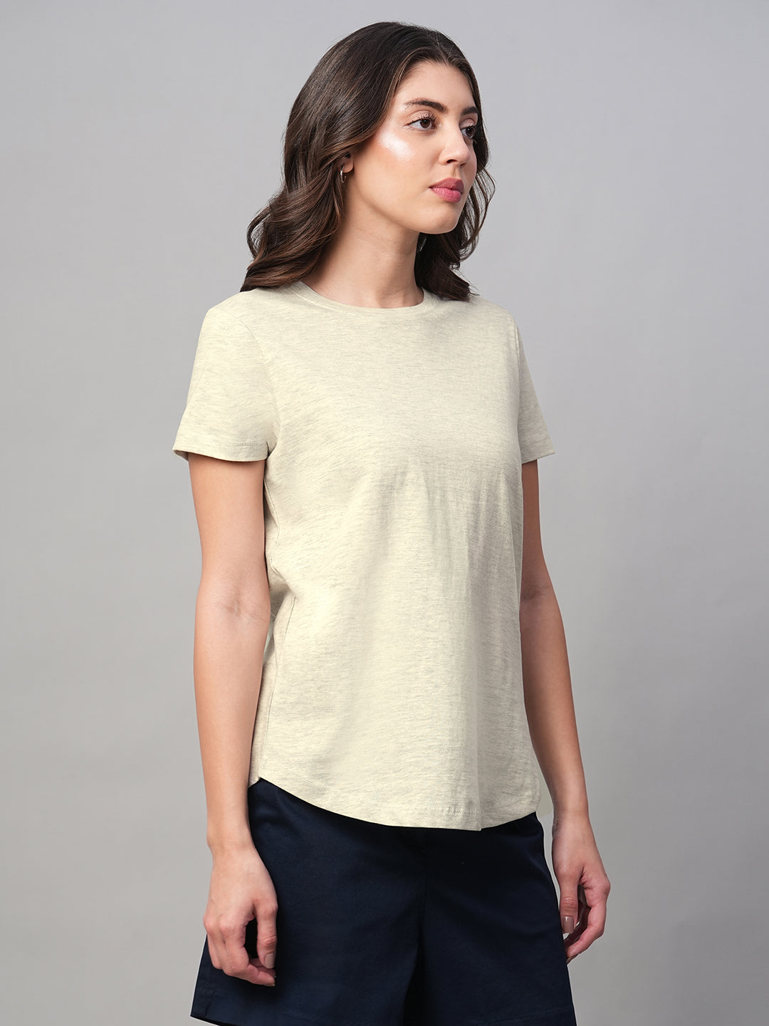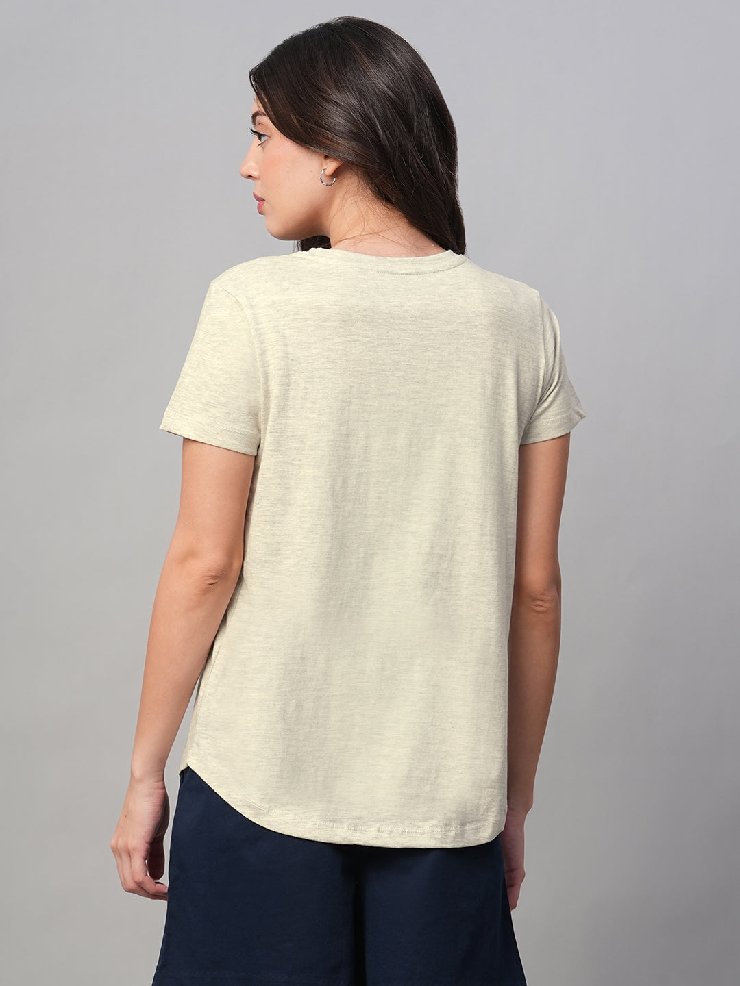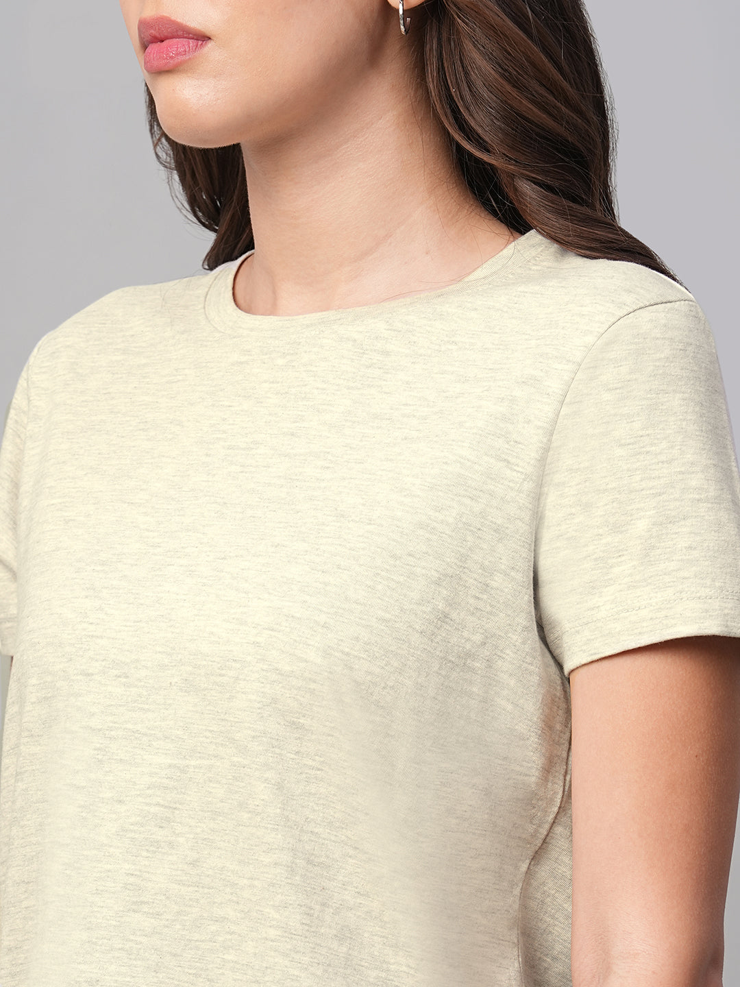 Women's Ecru Melan 100% Cotton Regular Fit Tshirt