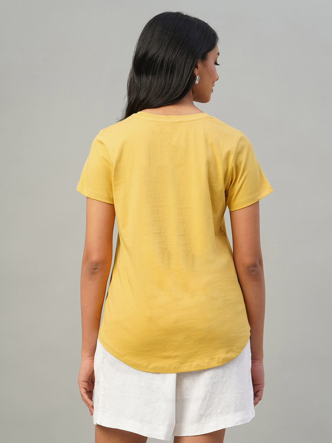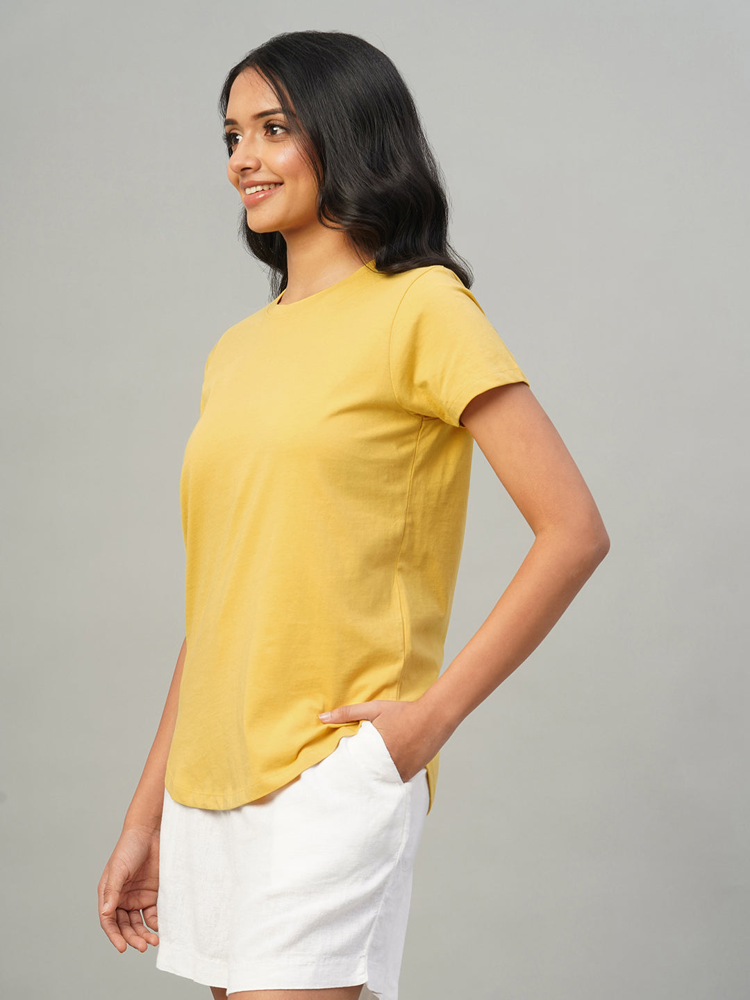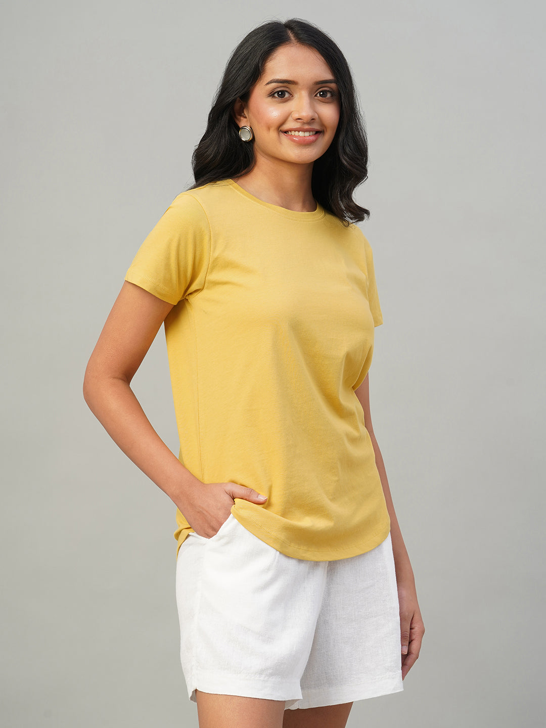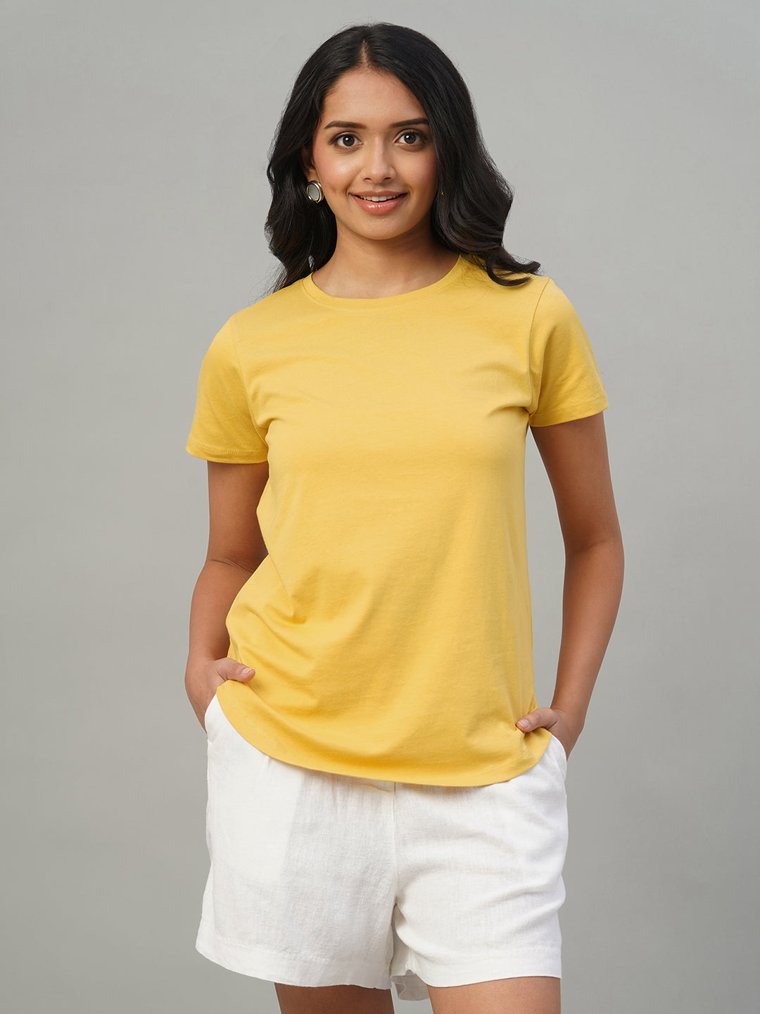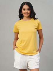 Women's Mustard 100% Cotton Slim Fit Tshirt