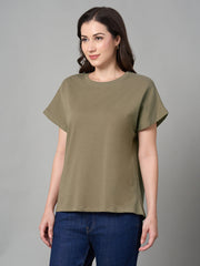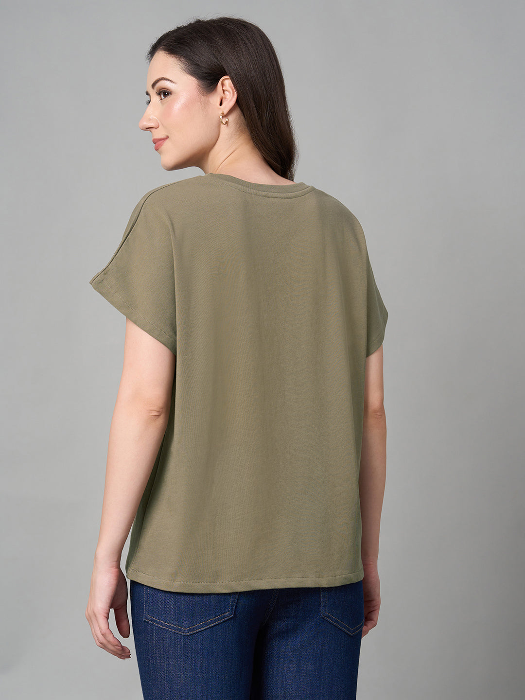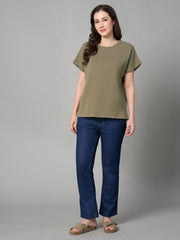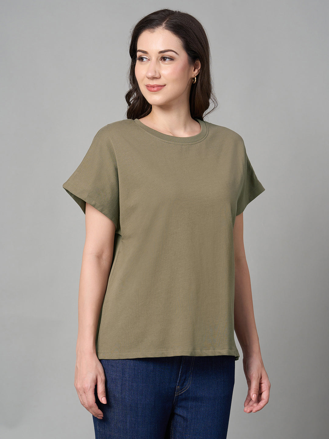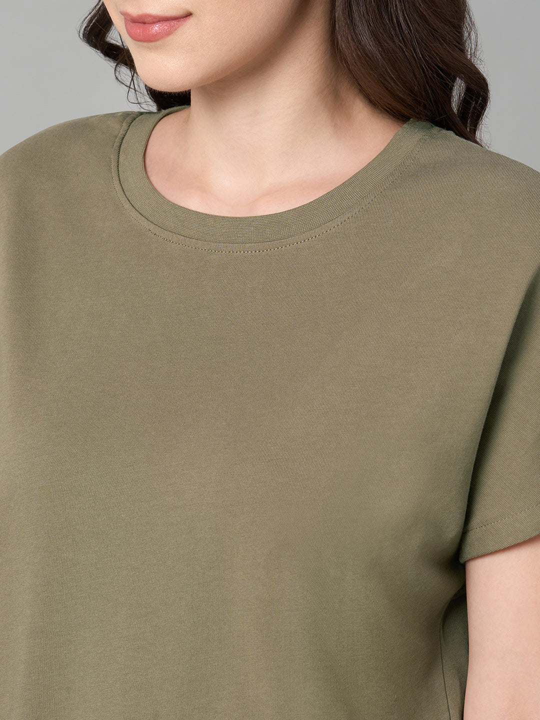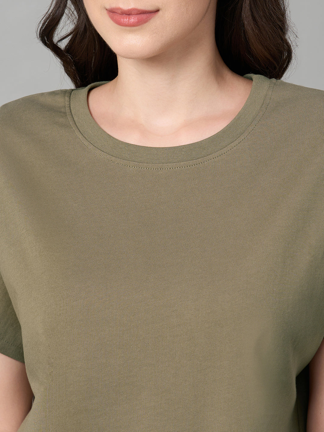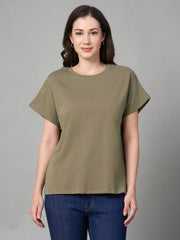 Women's Khaki 100% Cotton Loose Fit Tshirt