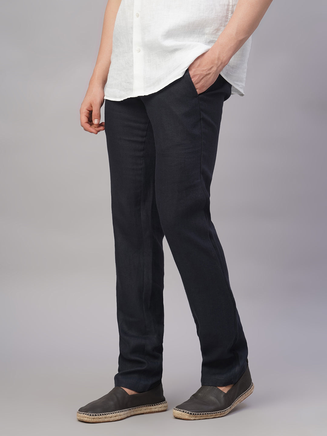 Men's Navy 100% Linen Regular Fit Pant