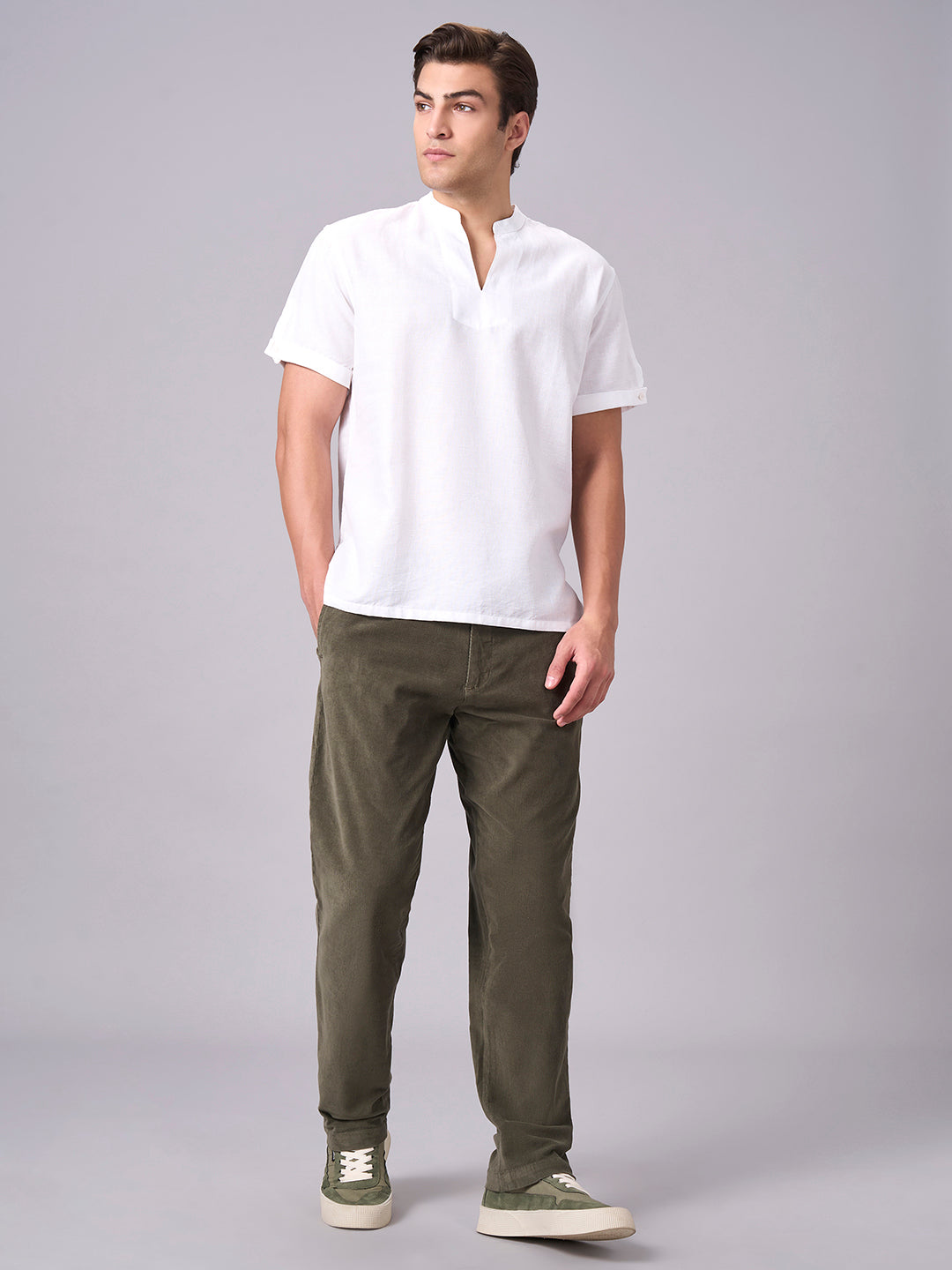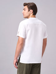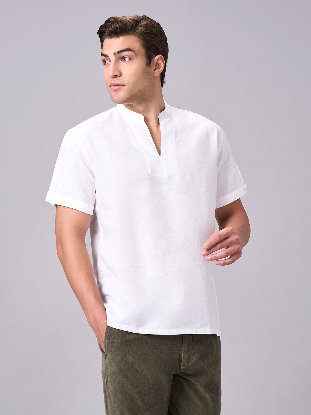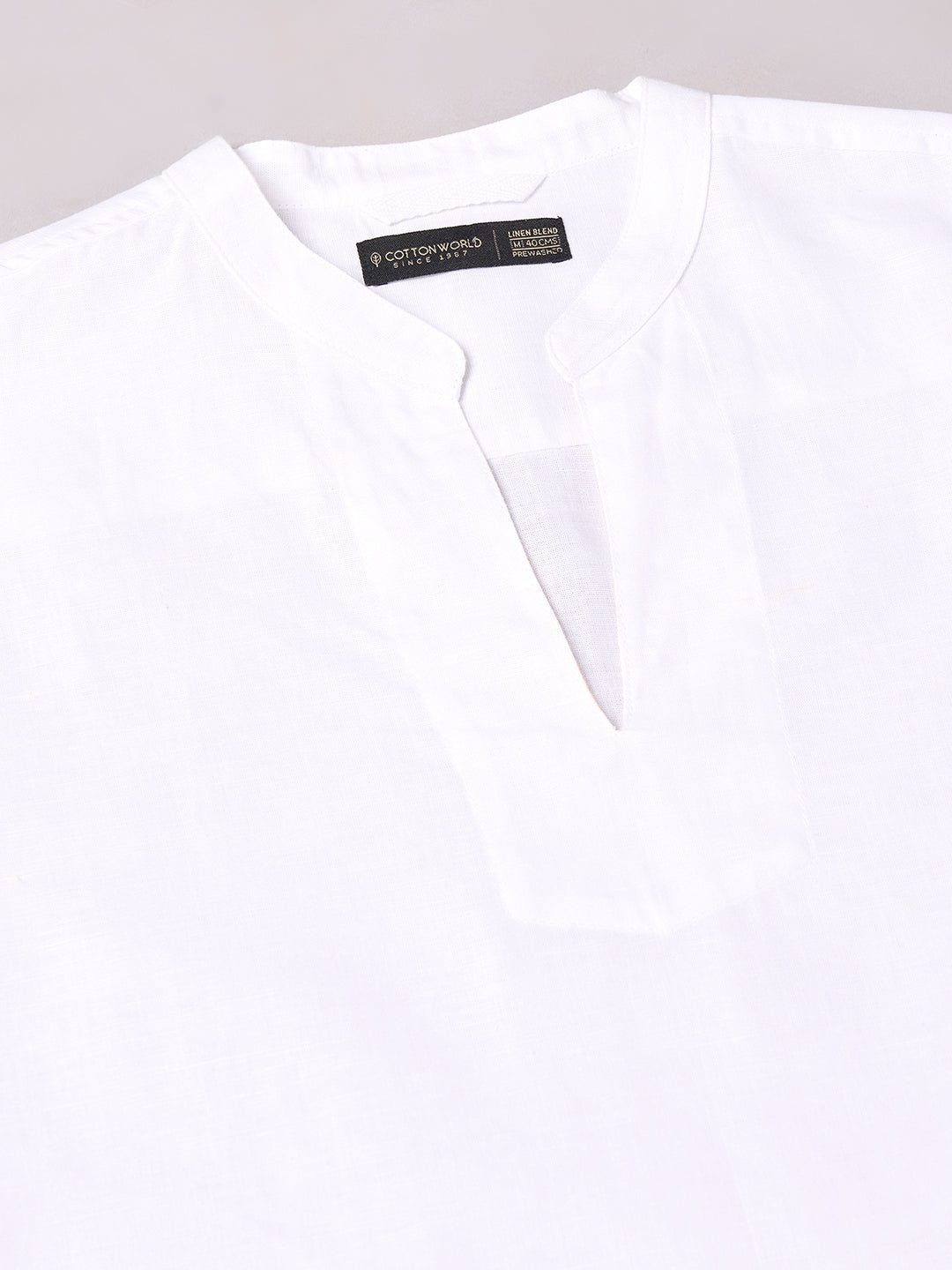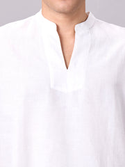 Men's White Linen Cotton Regular Fit Kurta Shirt