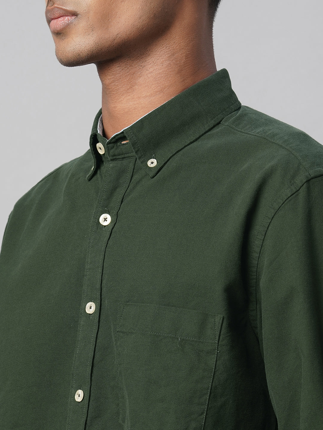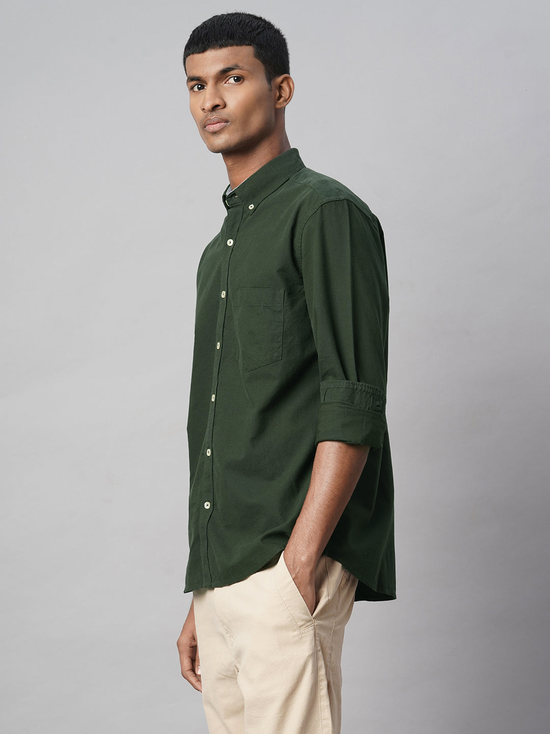 Men's Olive 100% Cotton Regular Fit Shirt