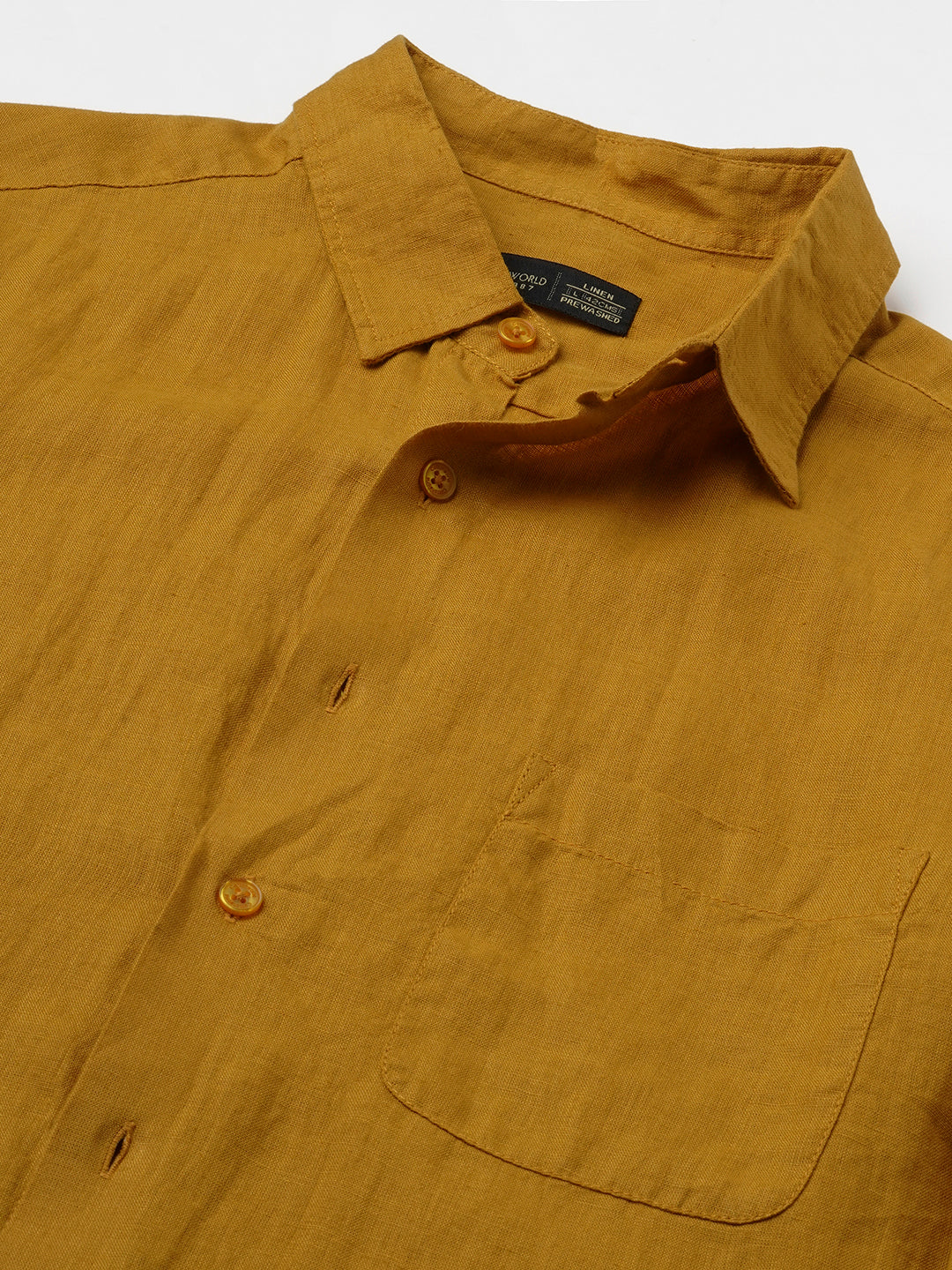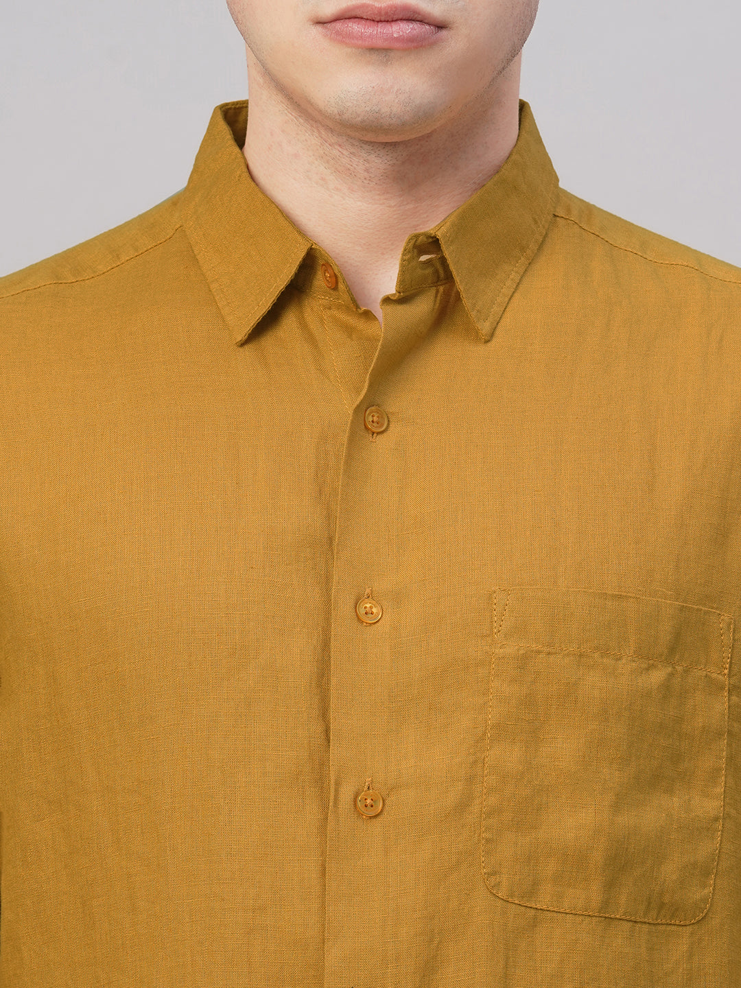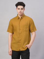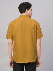 Men's Mustard 100% Linen Regular Fit Shirt