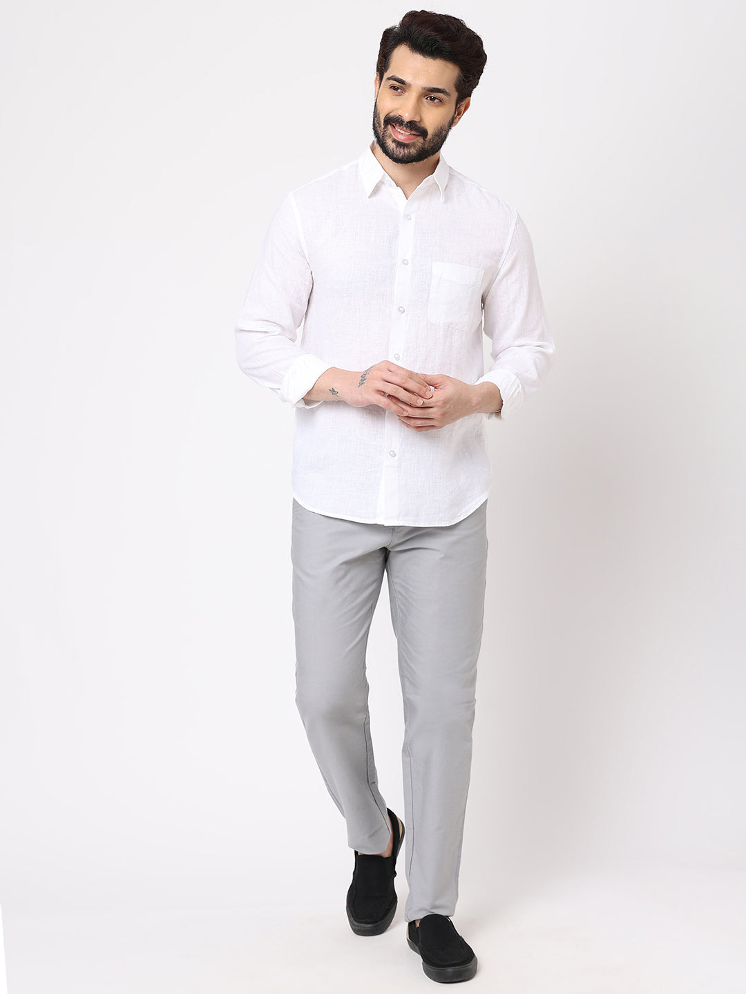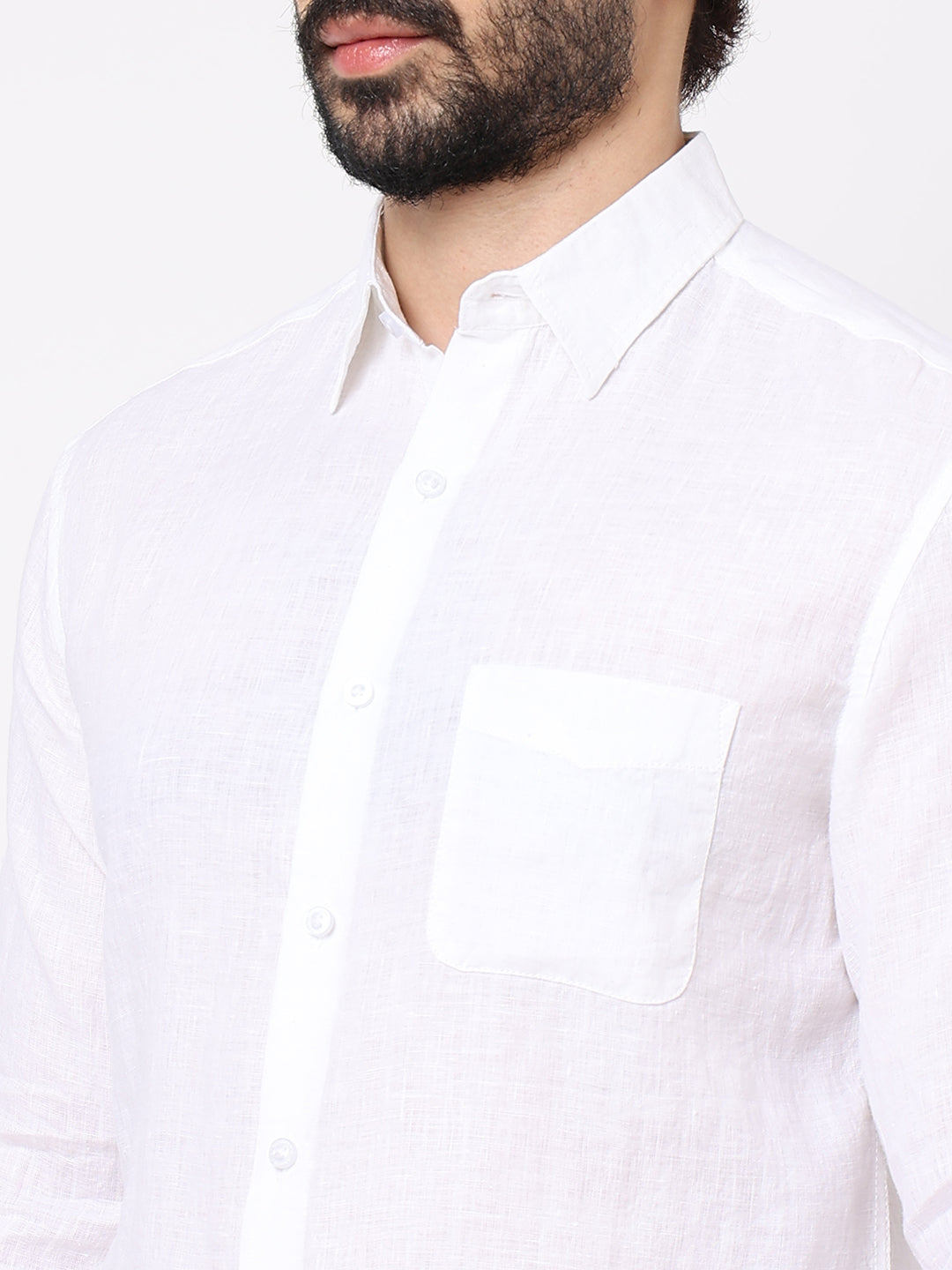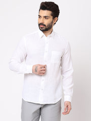 Men's White 100% Linen Regular Fit Shirt