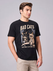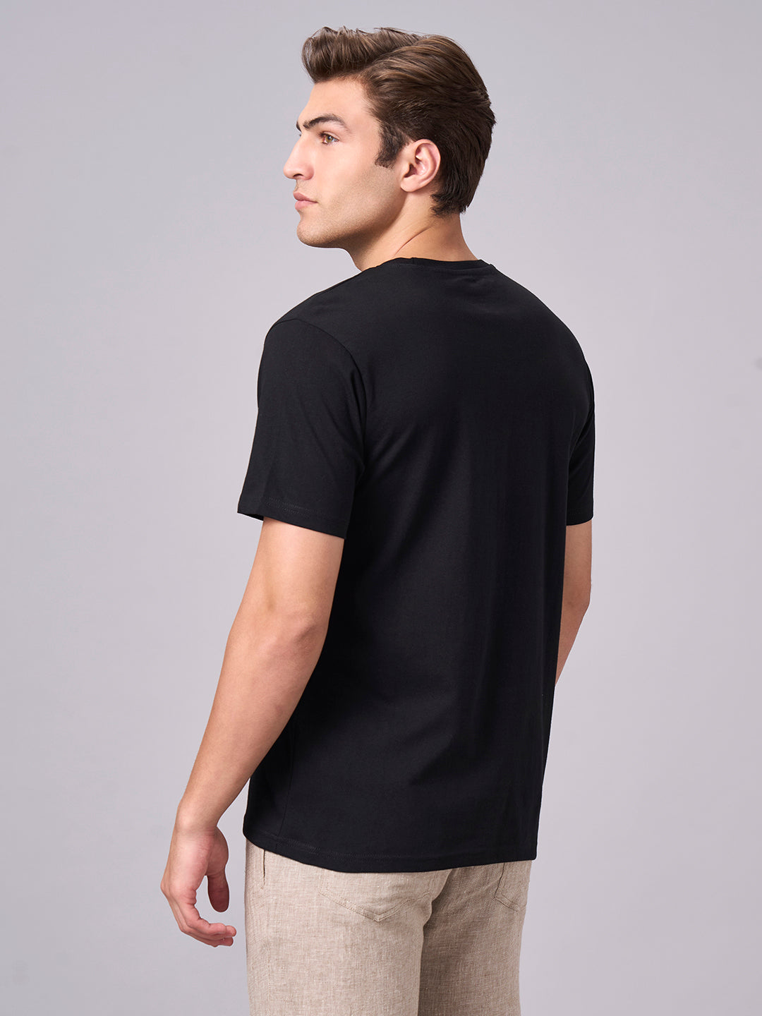 Men's Black 100% Cotton Regular Fit Tshirt